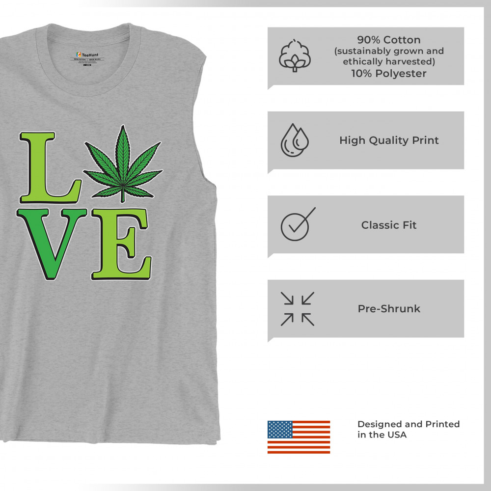 LOVE design with a bold weed leaf. Perfect for 420 fans, stoners, cannabis lifestyle wear, green pride, and marijuana lovers.