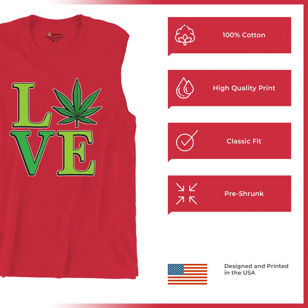 LOVE design with a bold weed leaf. Perfect for 420 fans, stoners, cannabis lifestyle wear, green pride, and marijuana lovers.
