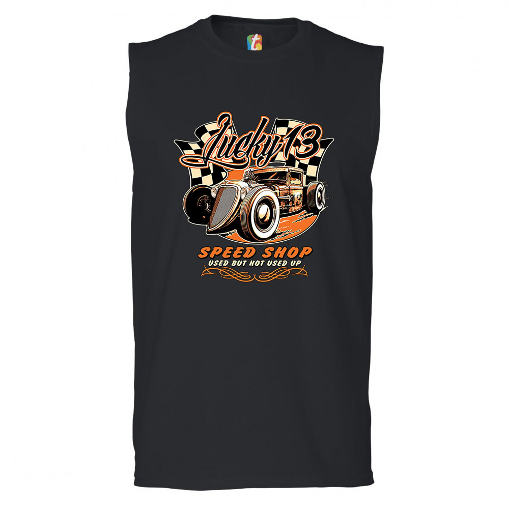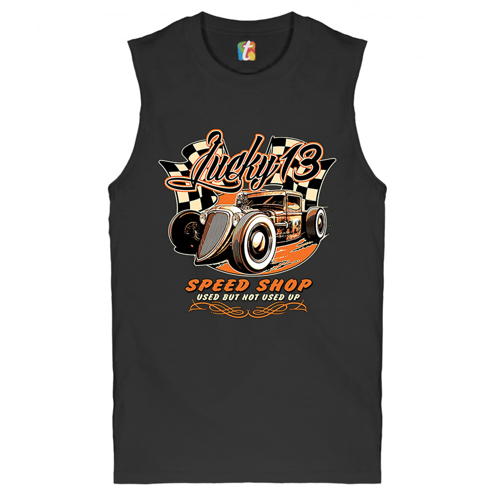 LUCKY 13 SPEED SHOP muscle shirt rat rod route 66 vintage racing car men's black