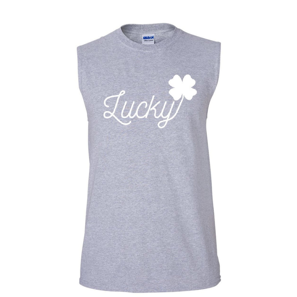 LUCKY SHAMROCK lucky irish muscle shirt st. patrick's day shamrock pub beer drinking sleeveless gray