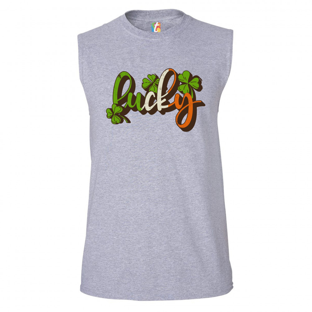 LUCKY muscle shirt irish st. patrick's day leprechaun elves shenanigans men's gray