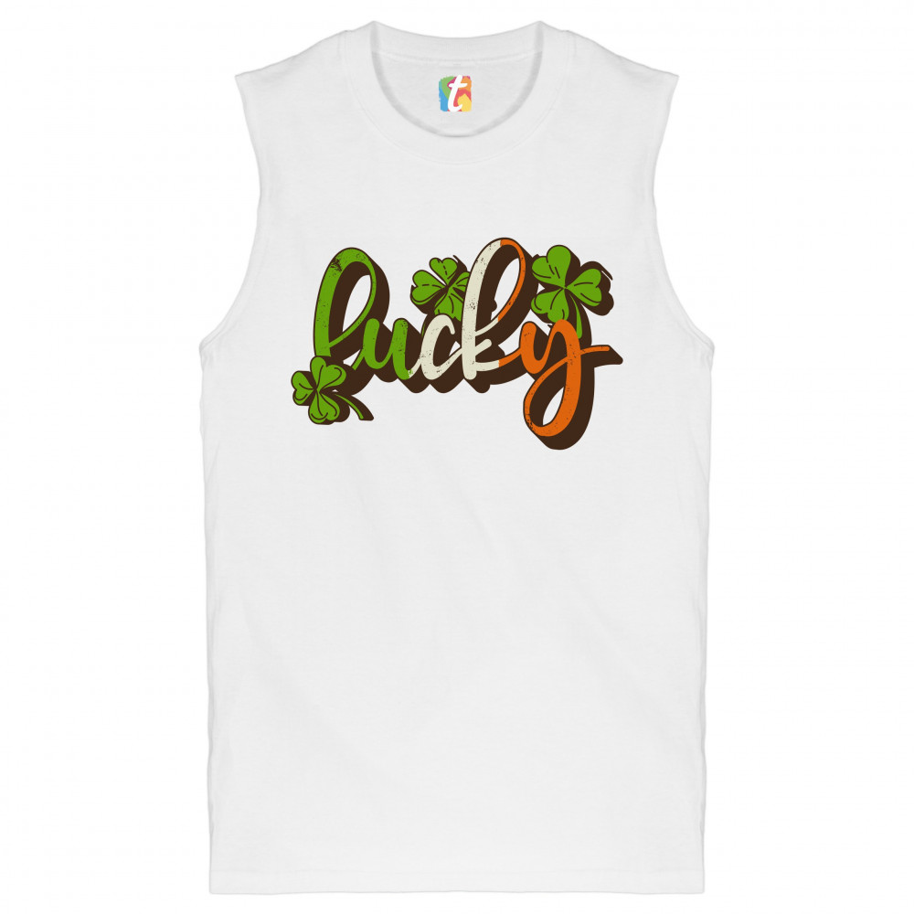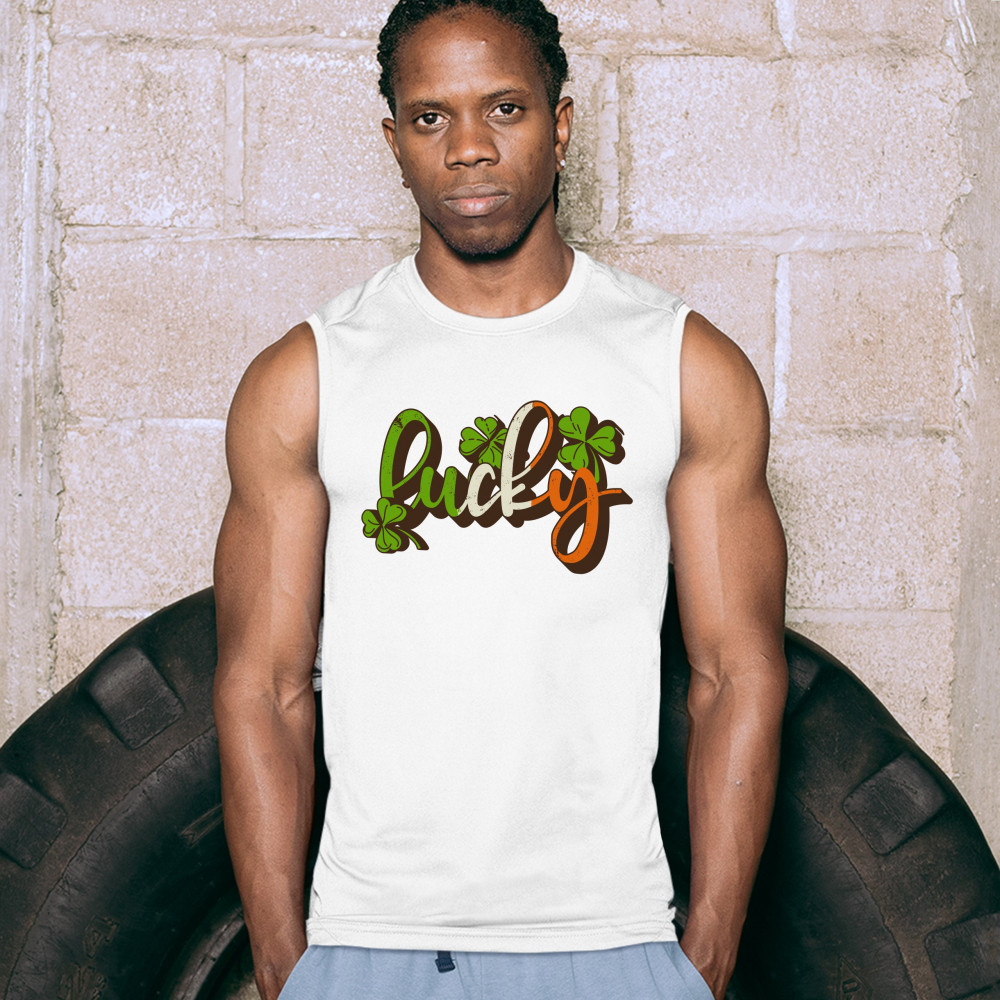 LUCKY muscle shirt irish st. patrick's day leprechaun elves shenanigans men's white