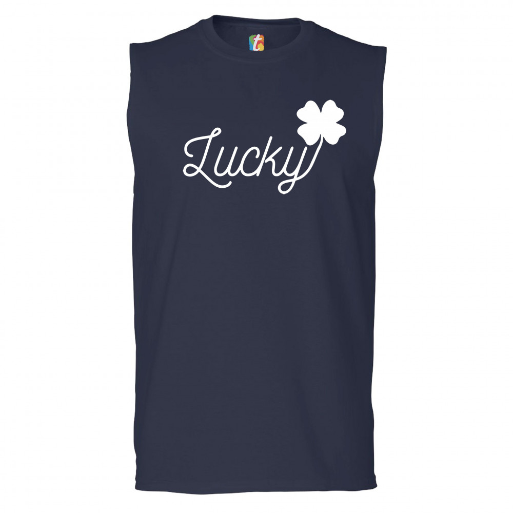 LUCKY SHAMROCK muscle shirt st. patrick's day funny holiday men's navy blue