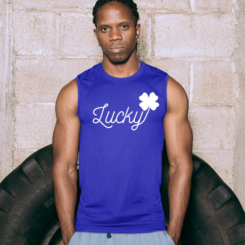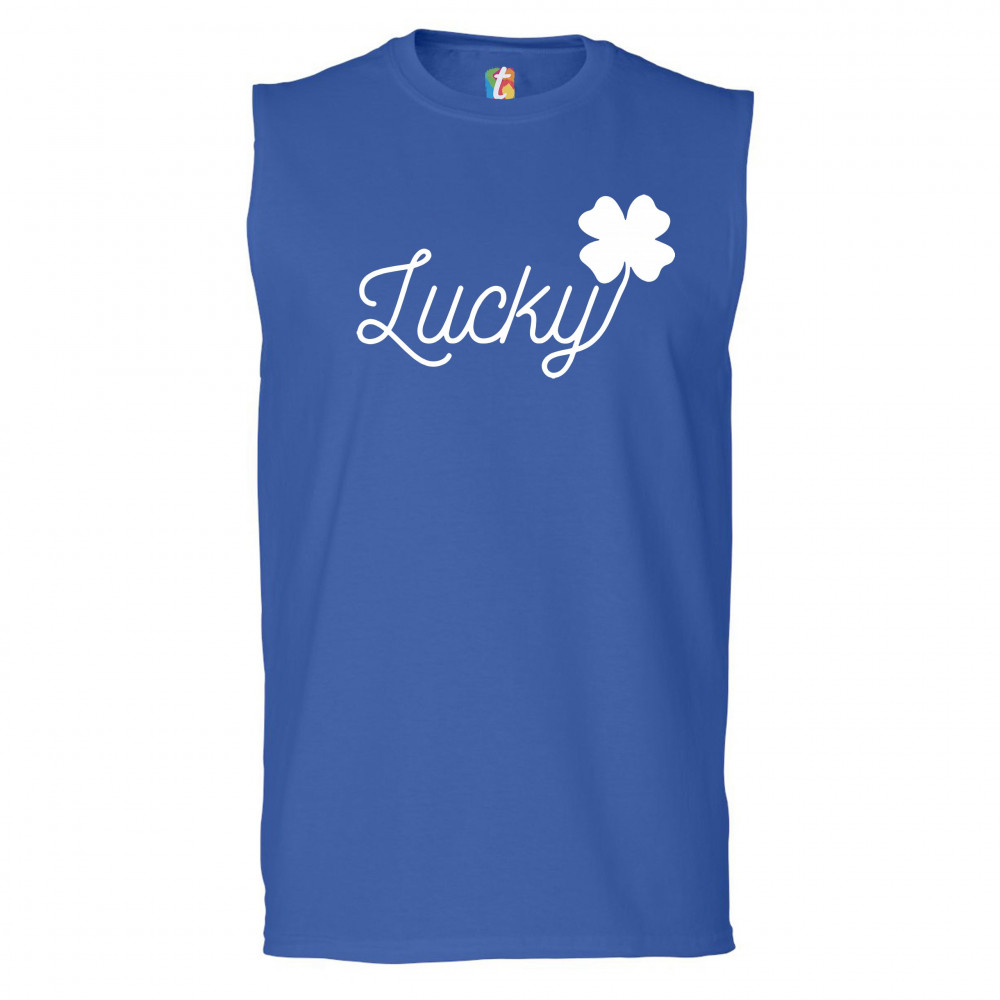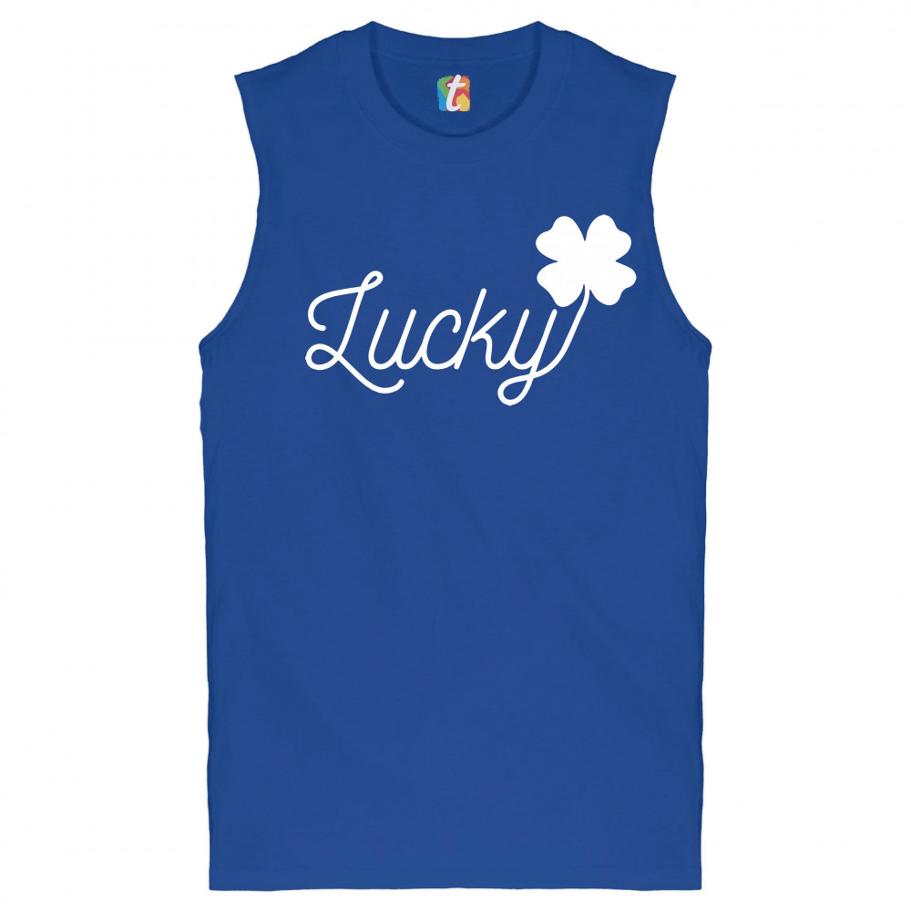 LUCKY SHAMROCK muscle shirt st. patrick's day funny holiday men's royal blue
