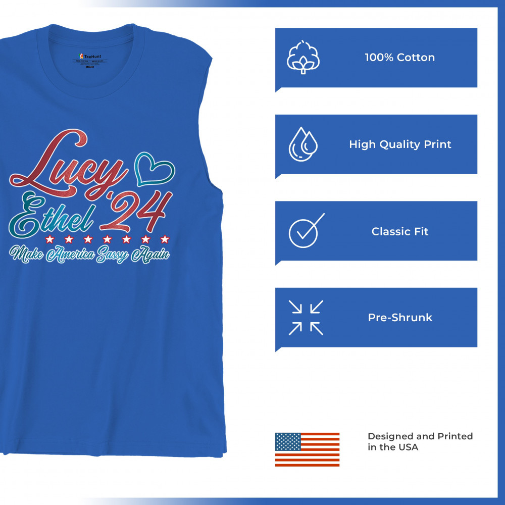 Step back into the golden age of television with this unique election-themed design. Perfect for fans of classic American TV, this design blends nostalgia with modern-day election humor. Whether you're wearing it to make a statement or just for fun, this design is sure to turn heads and spark conversations. Ideal for casual wear, themed parties, or as a thoughtful gift for TV buffs. Celebrate the past while looking ahead with this delightful and sassy design.
