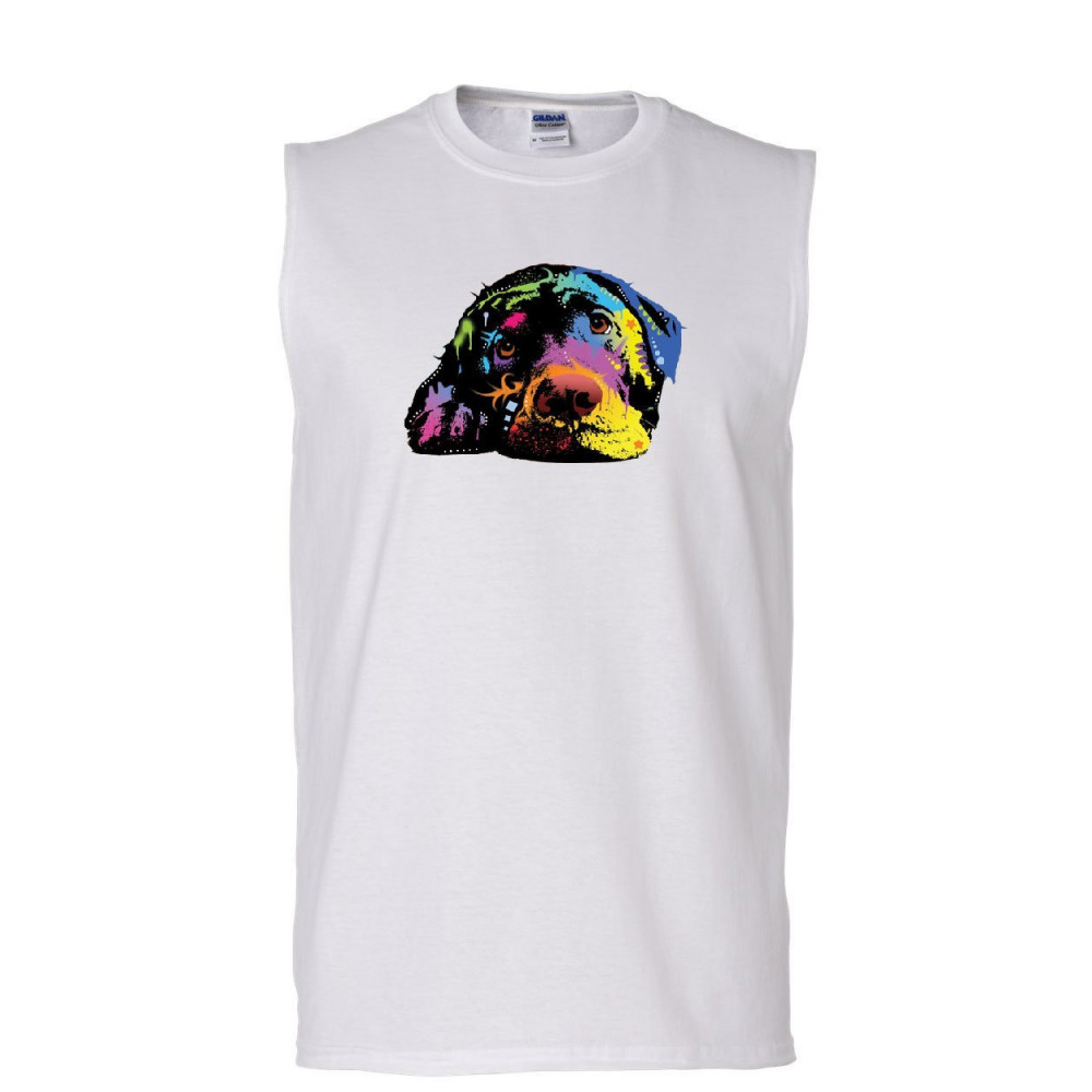 LYING LABRADOR RETRIEVER muscle shirt dean russo neon lab pet lovers sleeveless white