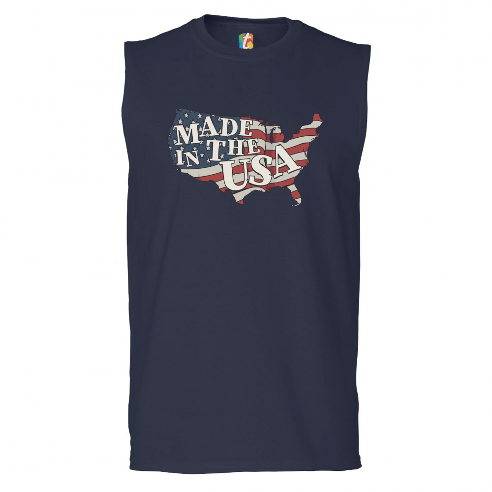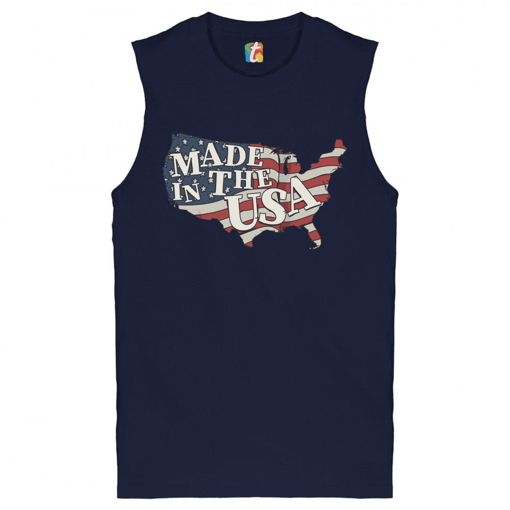 MADE IN THE USA muscle shirt american flag independence day 4th of july men's navy blue