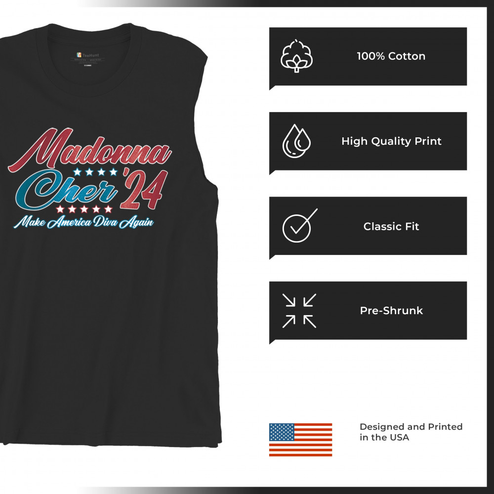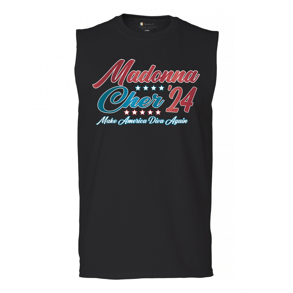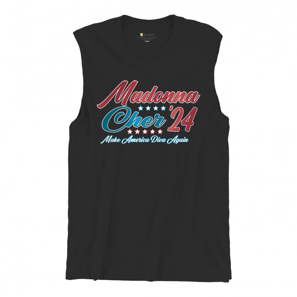 MADONNA CHER 2024 MAKE AMERICA DIVA AGAIN muscle shirt pop culture icon men's black