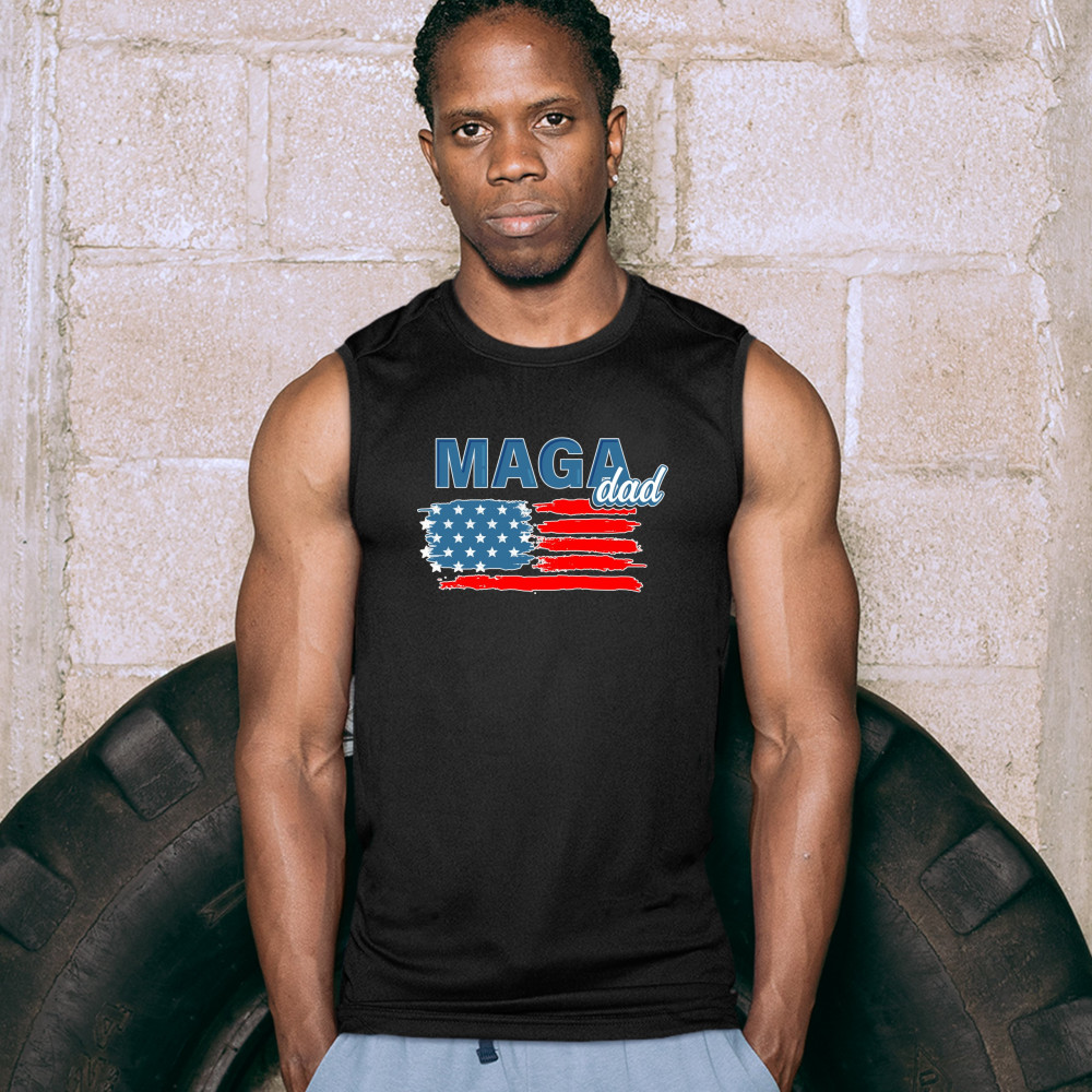MAGA DAD AMERICAN FLAG muscle shirt donald trump 2020 keep america great men's black