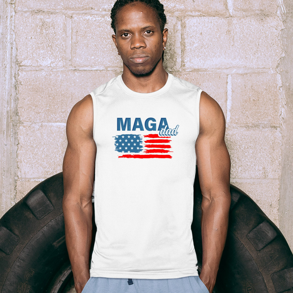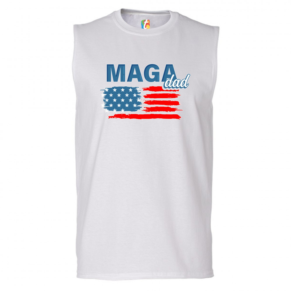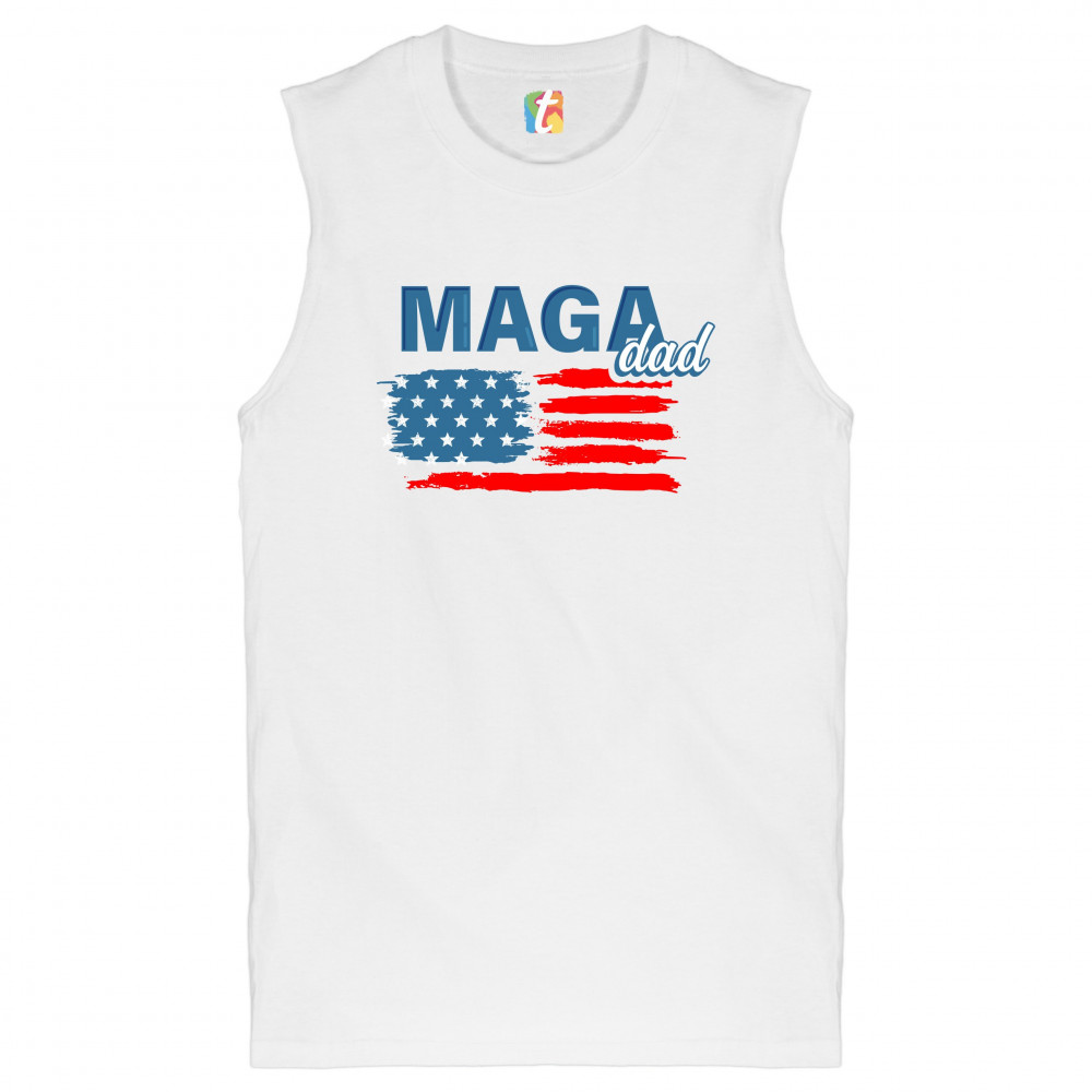 MAGA DAD AMERICAN FLAG muscle shirt donald trump 2020 keep america great men's white