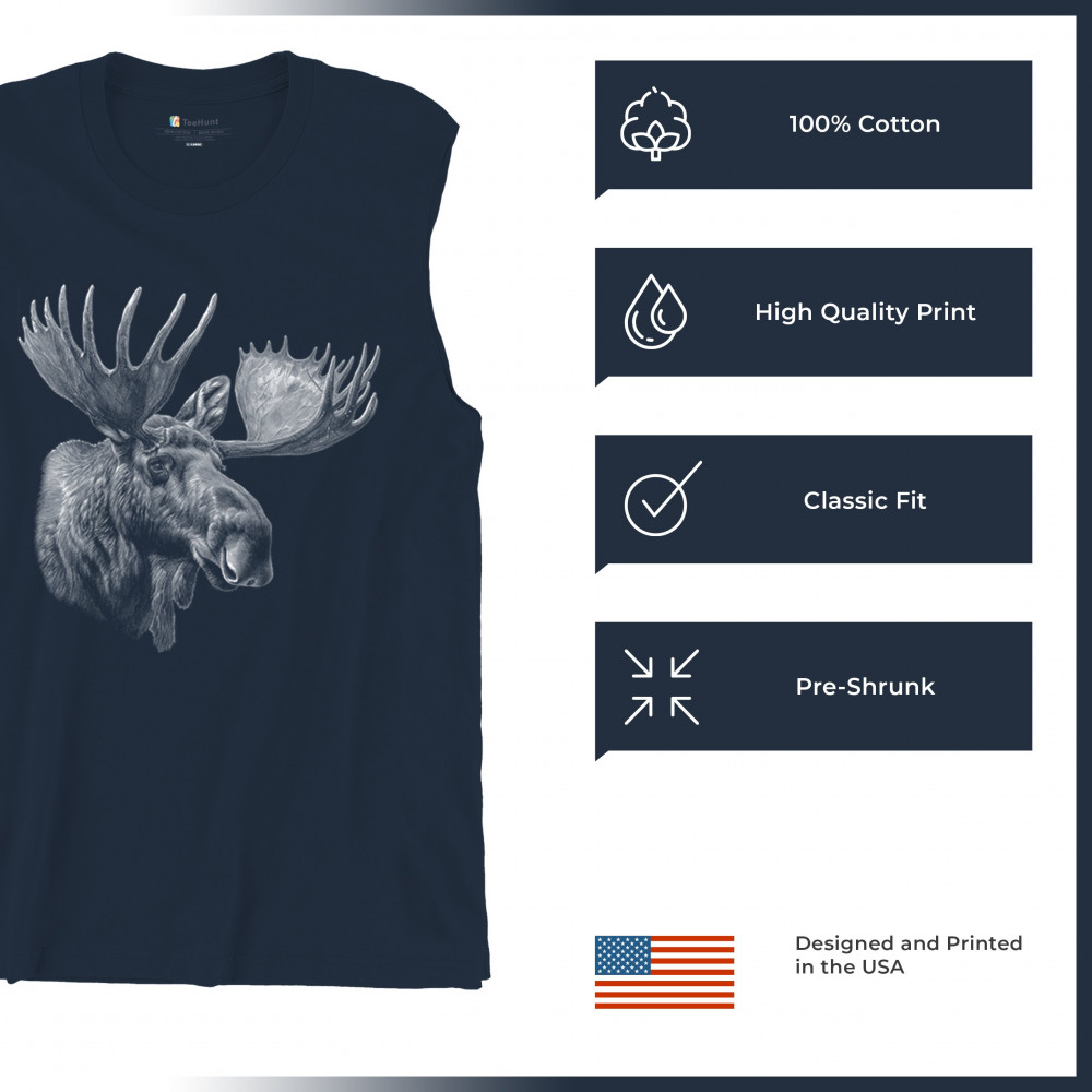 Celebrate the wilderness with this realistic bull moose head design. Rendered in crisp monochrome sketch style, it’s made for outdoorsmen, hunters, nature hikers, and wildlife lovers. From northern forests to cozy cabins, this bold look pays tribute to the calm strength and majesty of one of nature’s most iconic creatures.