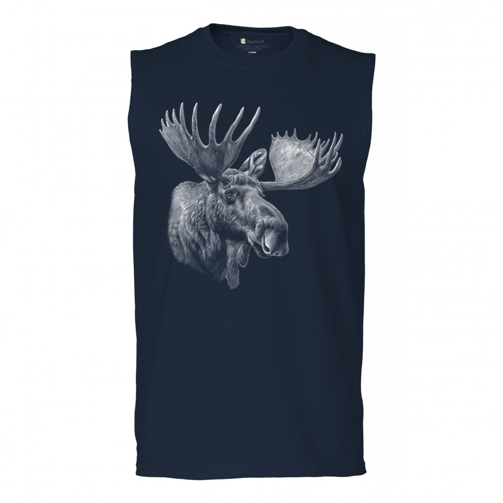 Bold monochrome moose head sketch for outdoorsmen, hunters, and wildlife fans. Great for fall hikes, cabin wear, or wilderness events.