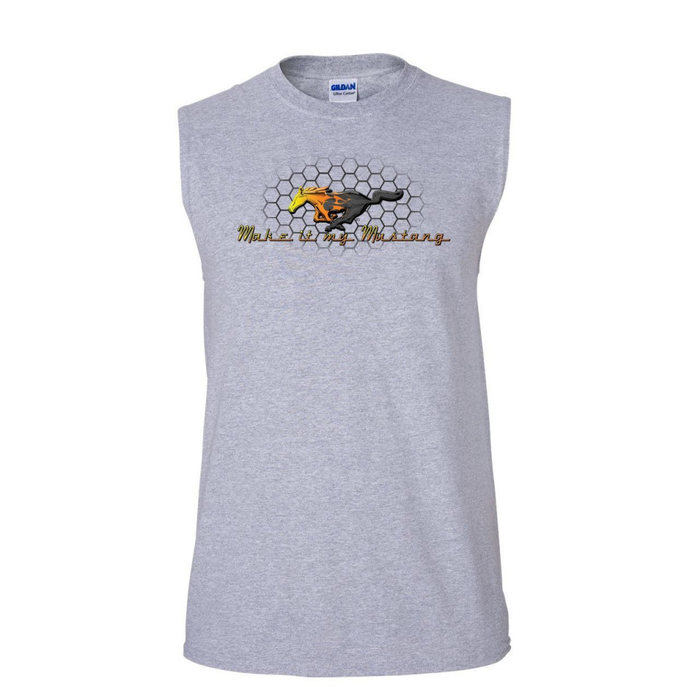 MAKE IT MY MUSTANG muscle shirt honeycomb american classic fire horse sleeveless gray
