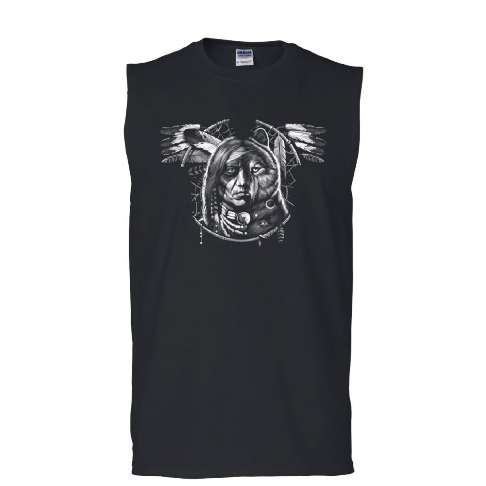 MAN WOLF SPIRIT DREAMCATCHER muscle shirt native american chief tribe sleeveless black