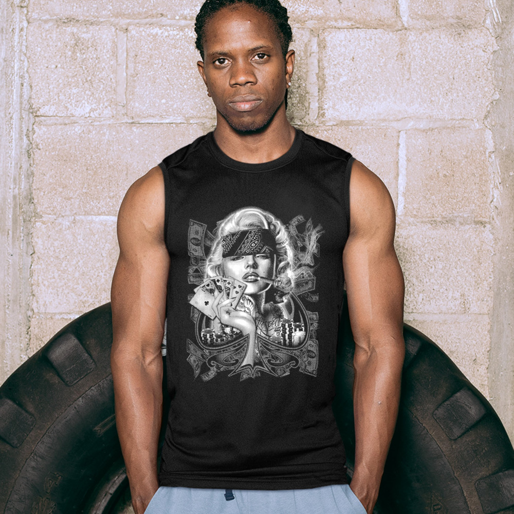 MARILYN MONROE PLAYING POKER SMOKING A JOINT muscle shirt 420 marijuana men's black