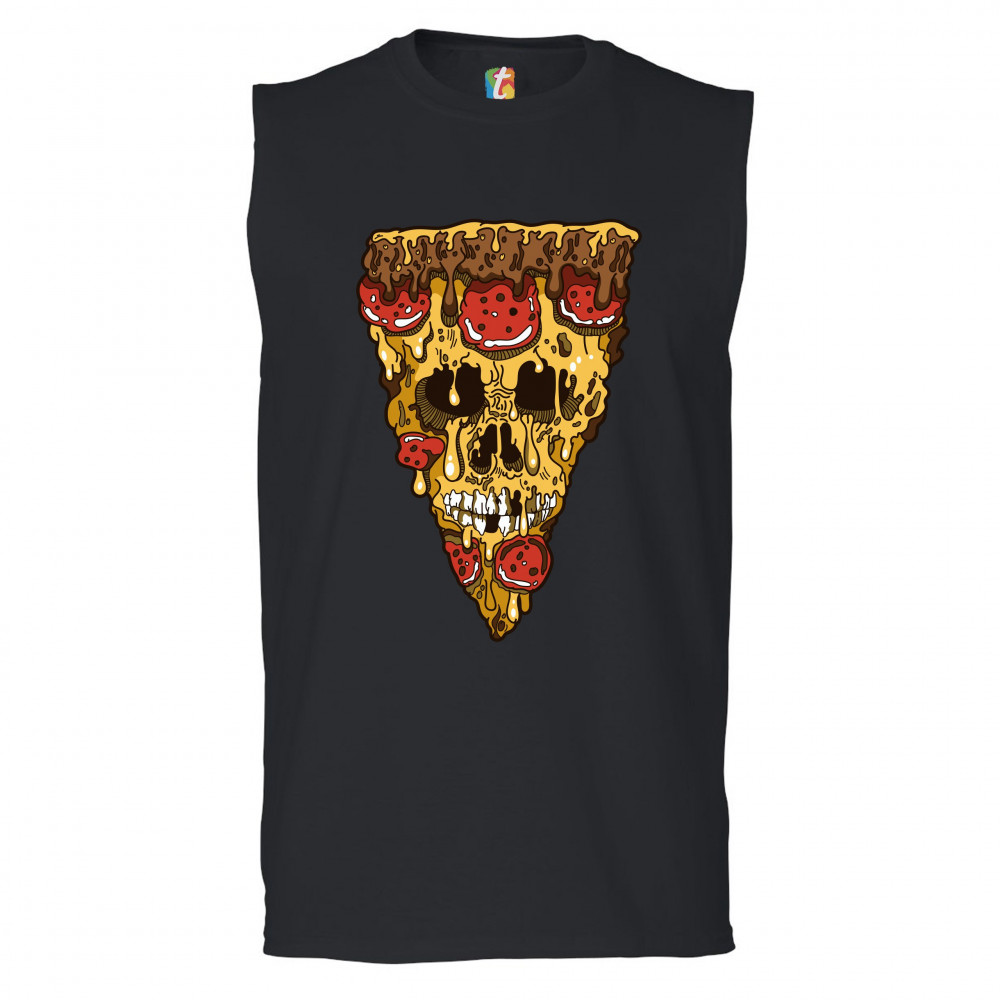 MELTING PIZZA ZOMBIE FACE muscle shirt horror halloween scary undead men's black