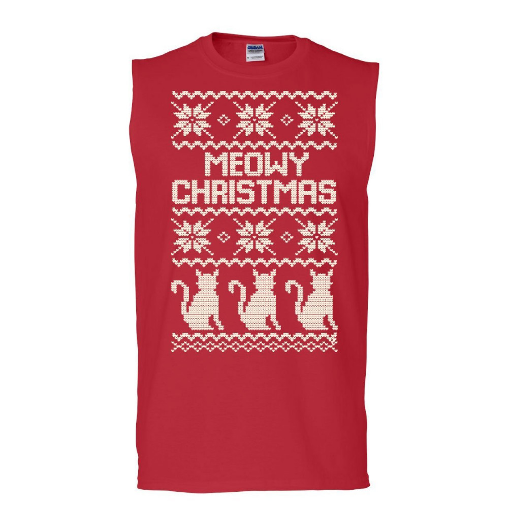 MEOWY CHRISTMAS muscle shirt cat christmas xmas ugly sweatshirt sleeveless red