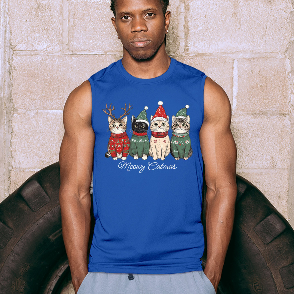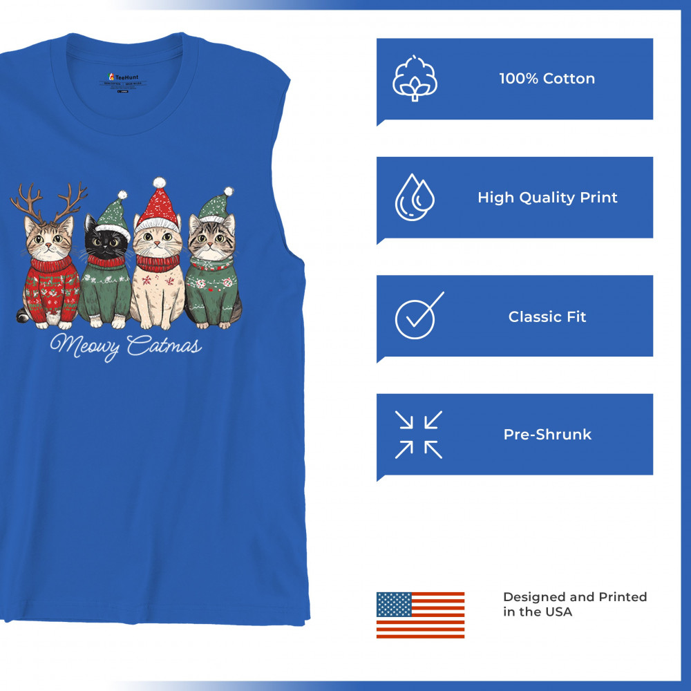 Cute Meowy Catmas design with festive kittens, perfect for cat lovers wanting a cozy holiday graphic and fun Christmas pet theme.
