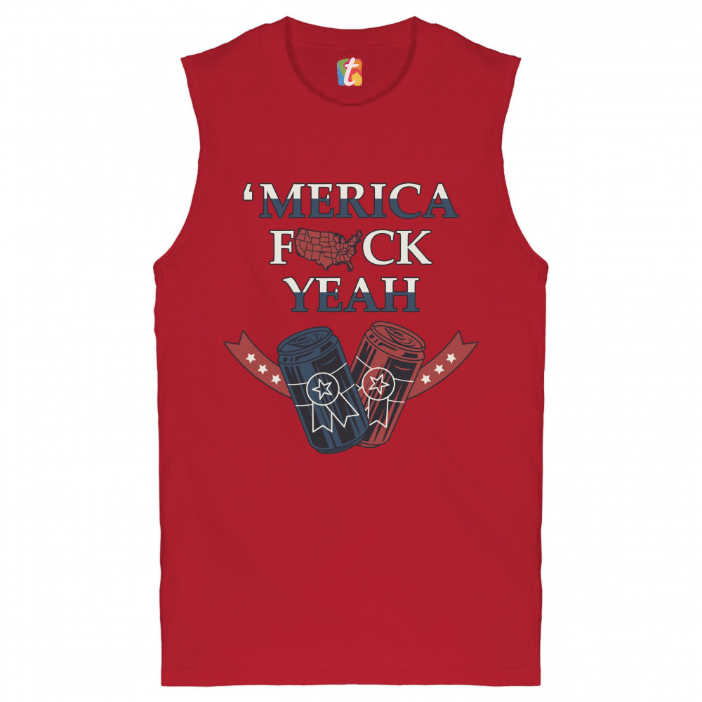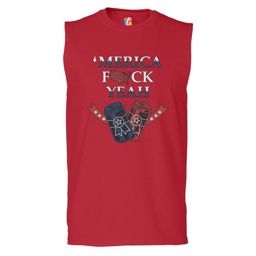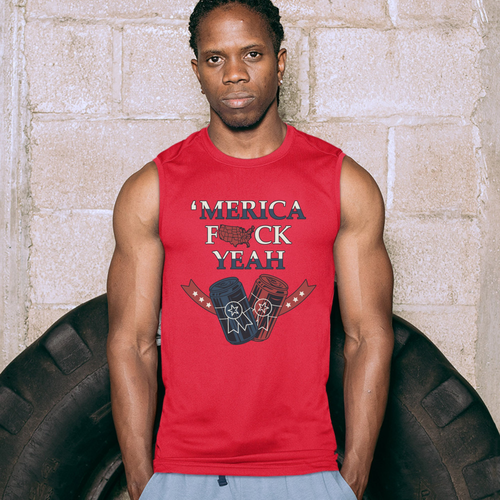 MERICA F*CK YEAH muscle shirt patriotic american pride drinking beer men's red