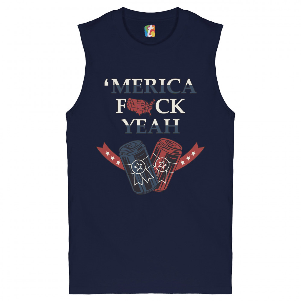 MERICA F*CK YEAH muscle shirt patriotic american pride drinking beer men's navy blue