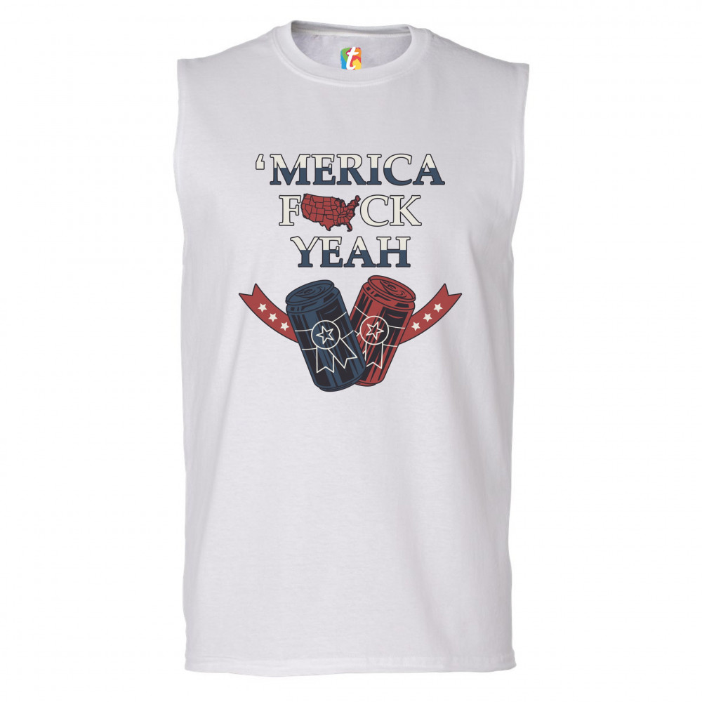 MERICA F*CK YEAH muscle shirt patriotic american pride drinking beer men's white