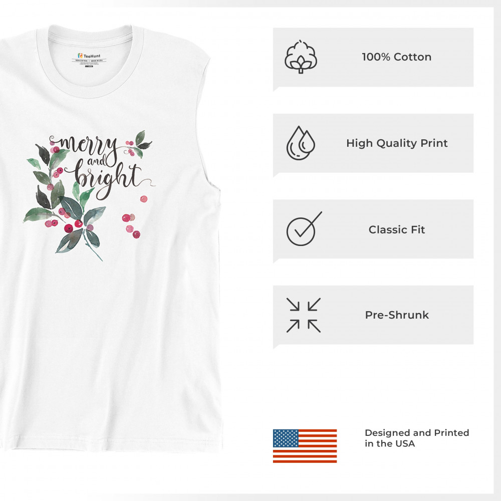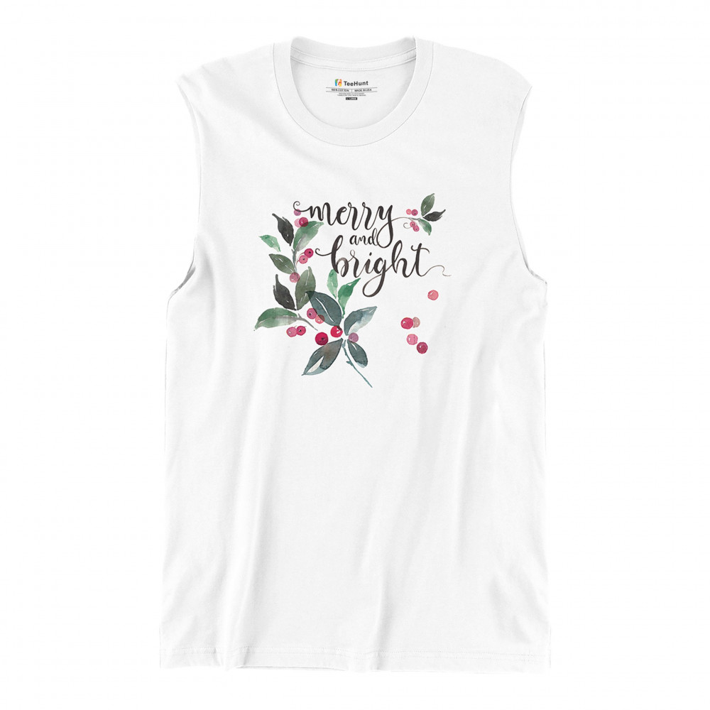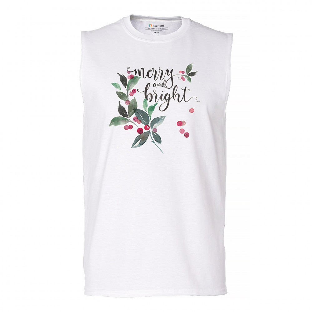 MERRY AND BRIGHT CUTE CHRISTMAS muscle shirt jolly santa clause xmas men's white
