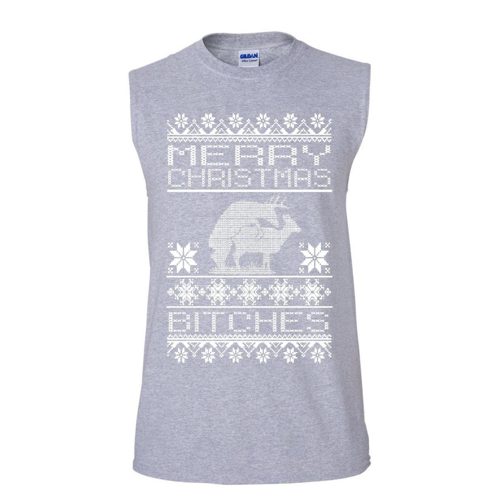 MERRY CHRISTMAS BITCHES muscle shirt deer humping ugly sweatshirt sleeveless gray