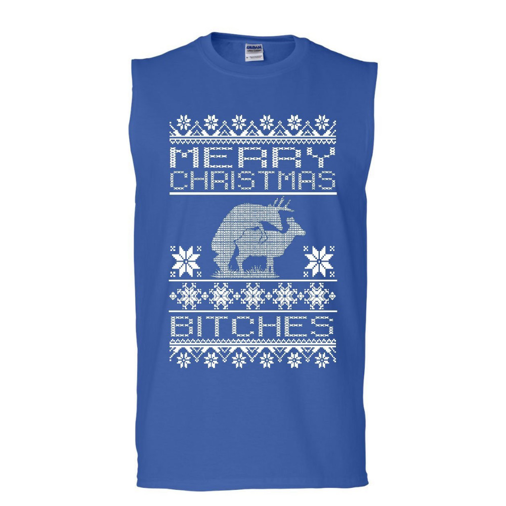 MERRY CHRISTMAS BITCHES muscle shirt deer humping ugly sweatshirt sleeveless blue