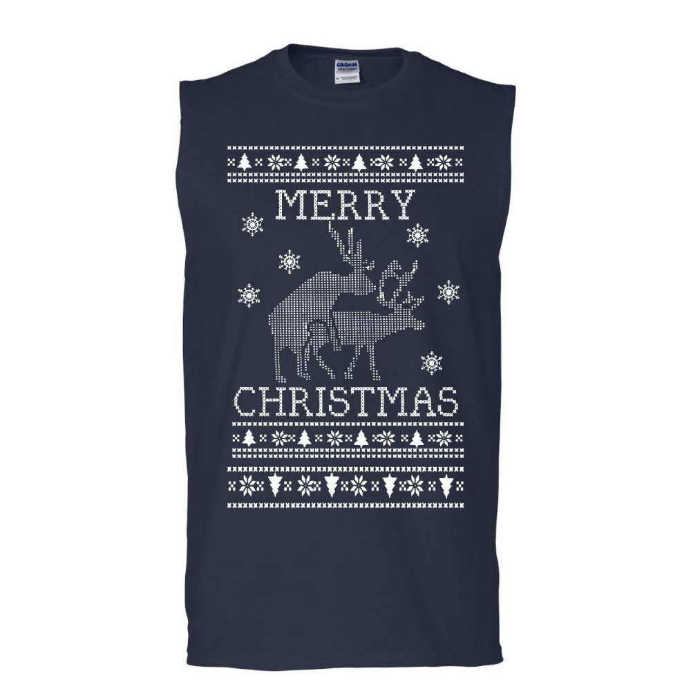 MERRY CHRISTMAS DEERS merry christmas muscle shirt deer humping ugly sweatshirt xmas sleeveless navy blue