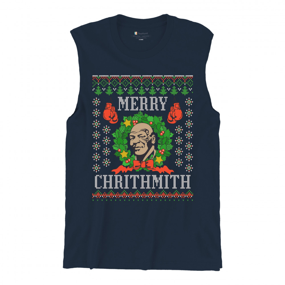 MERRY CHRITHMITH muscle shirt mike tyson ugly sweater funny christmas men's navy blue