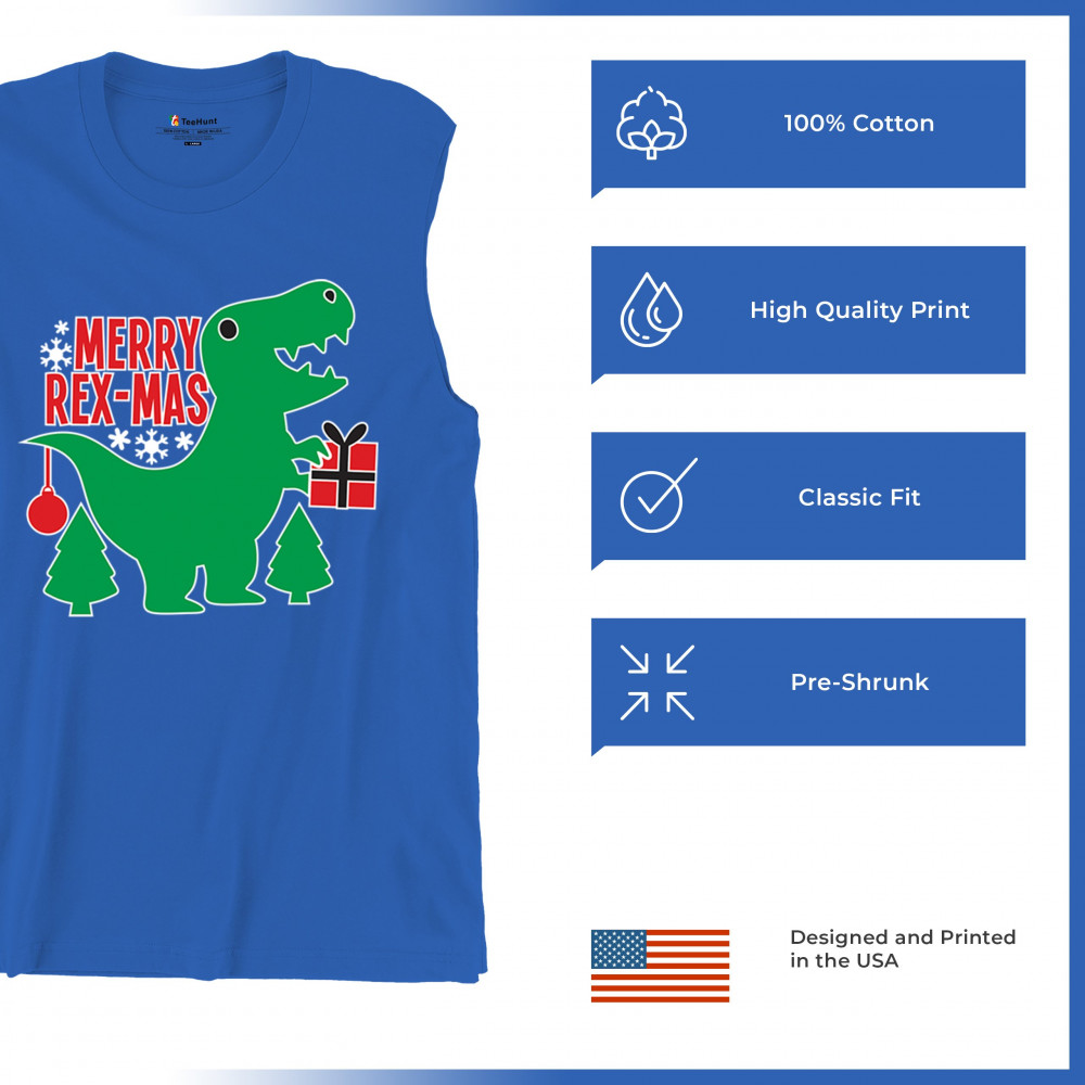 Merry Rex-Mas dinosaur Christmas design with a cute T-Rex, gift, and festive holiday details. Perfect for fun family celebrations and cheerful winter style.