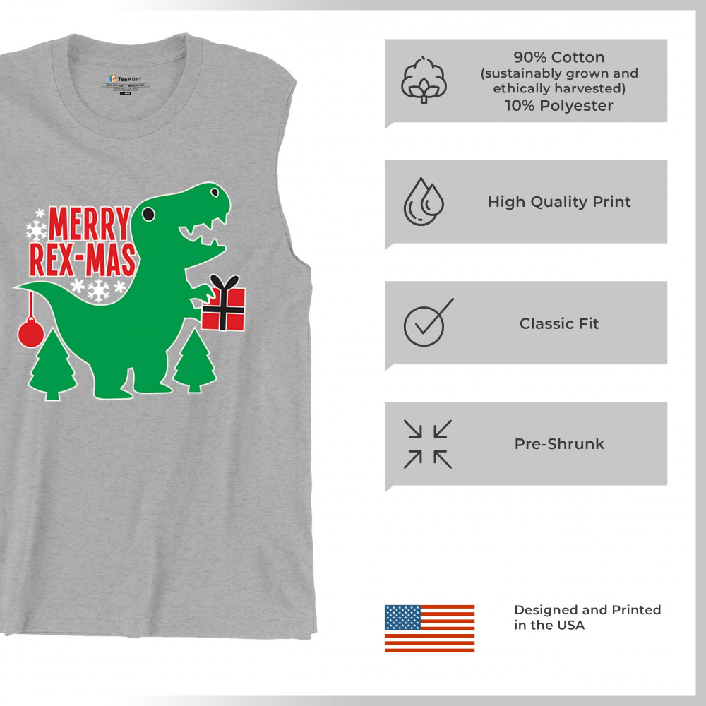 Merry Rex-Mas dinosaur Christmas design with a cute T-Rex, gift, and festive holiday details. Perfect for fun family celebrations and cheerful winter style.
