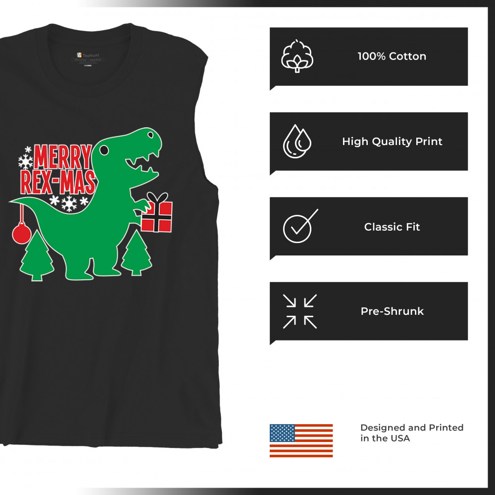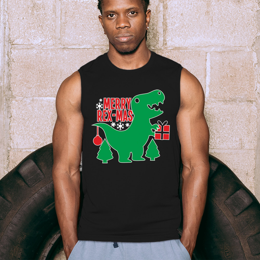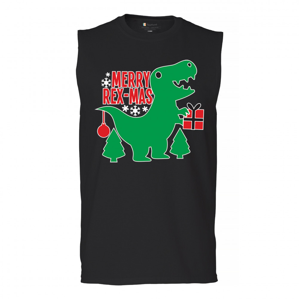MERRY REX-MAS men's muscle shirt christmas ugly sweater party funny t-rex black