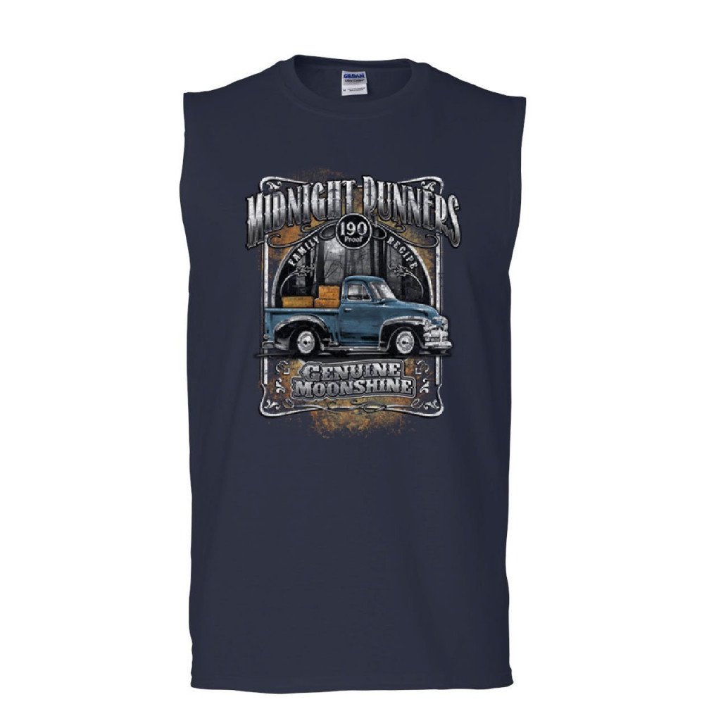 MIDNIGHT RUNNERS muscle shirt genuine moonshine drinking whisky booze sleeveless navy blue