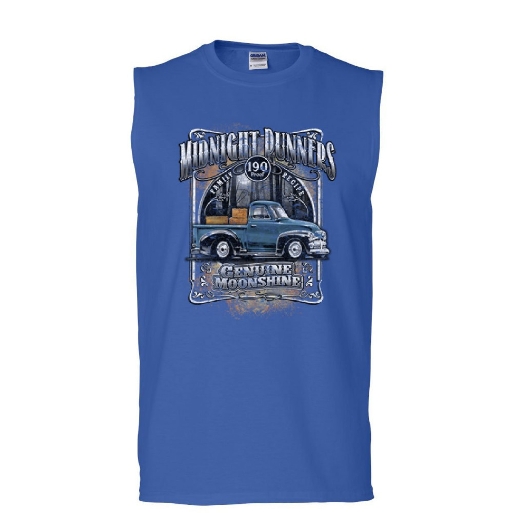 MIDNIGHT RUNNERS muscle shirt genuine moonshine drinking whisky booze sleeveless blue
