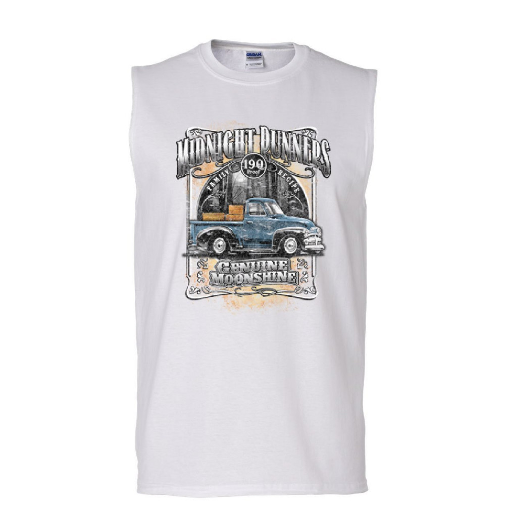 MIDNIGHT RUNNERS muscle shirt genuine moonshine drinking whisky booze sleeveless white