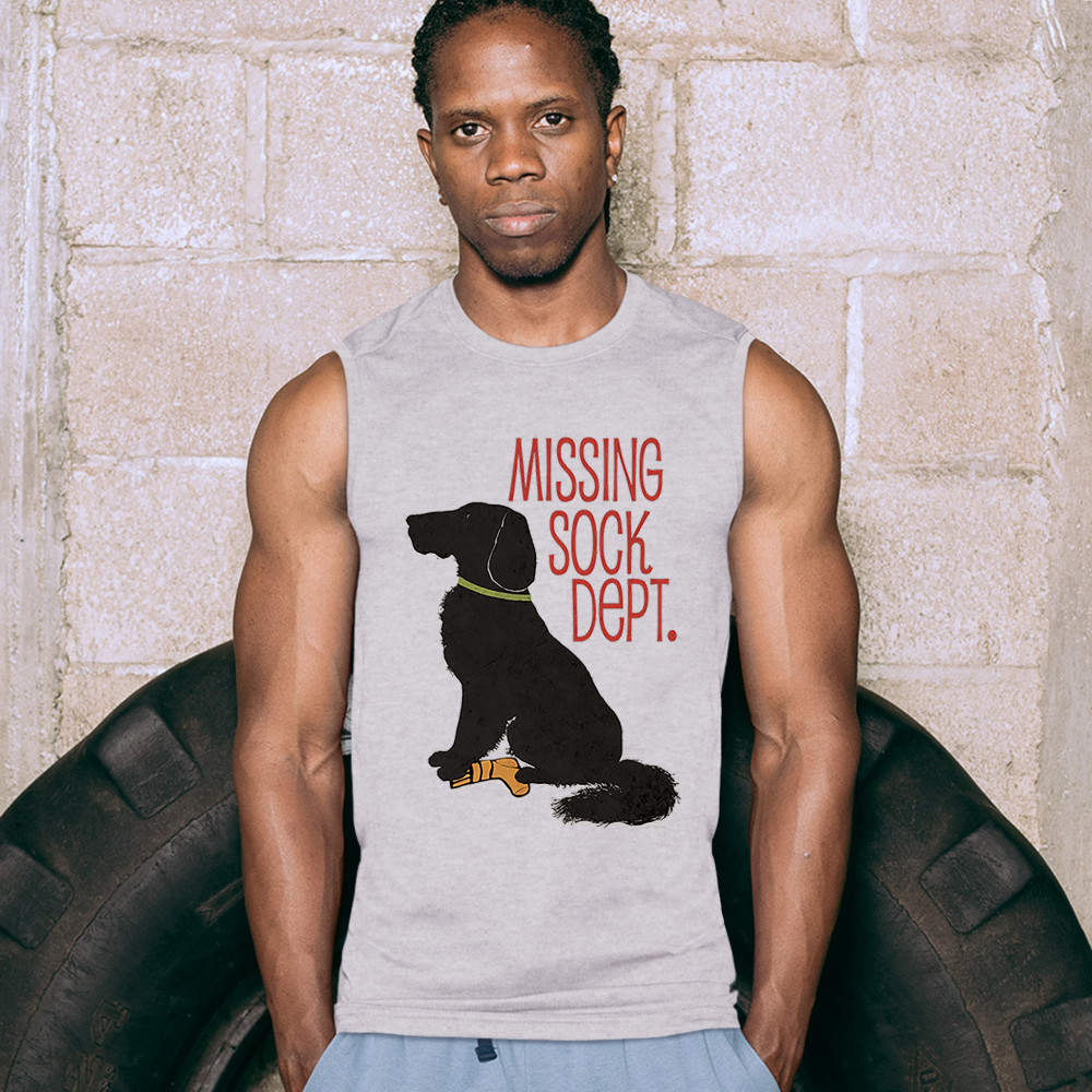 MISSING SOCK DEPT. muscle shirt flat-coated retriever i love my dog men's gray