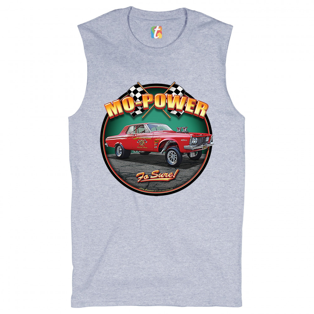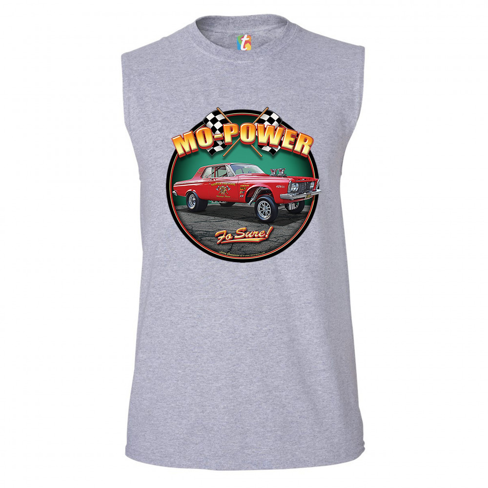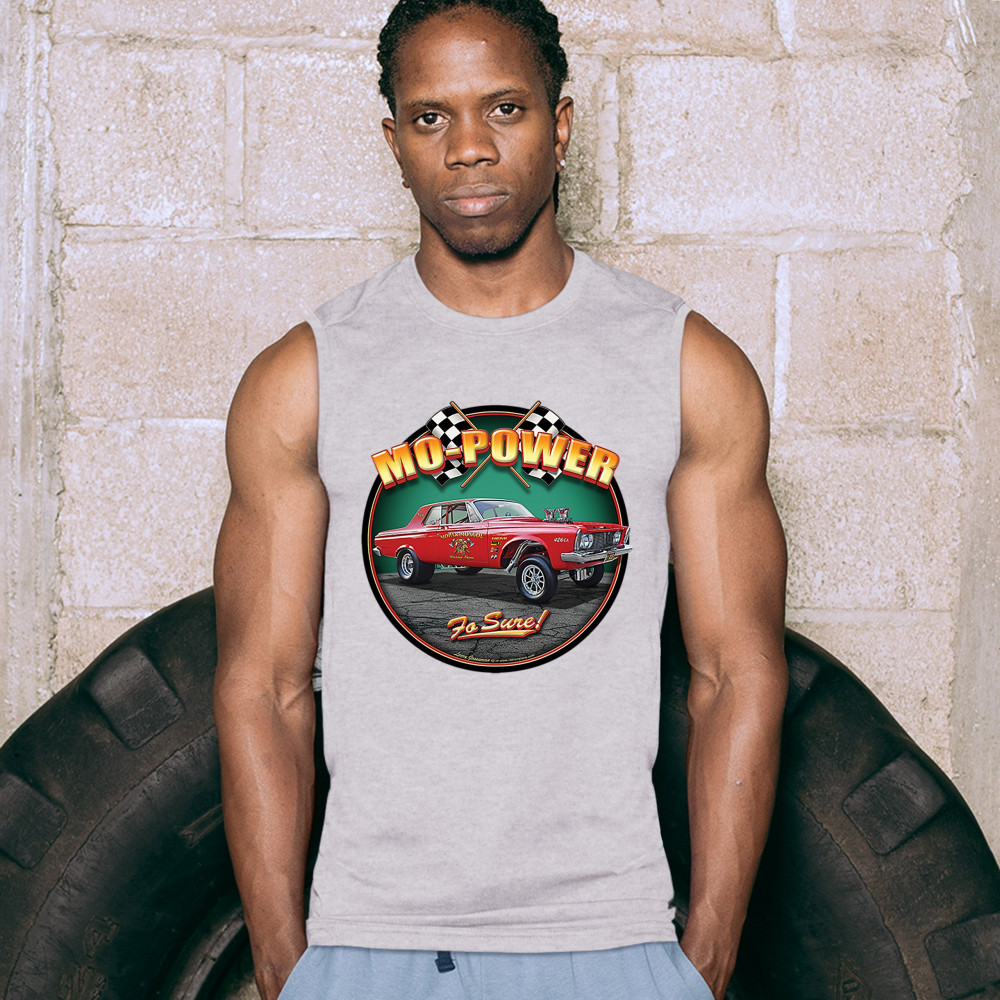 MO-POWER FO SURE! muscle shirt american muscle car racing route 66 men's gray