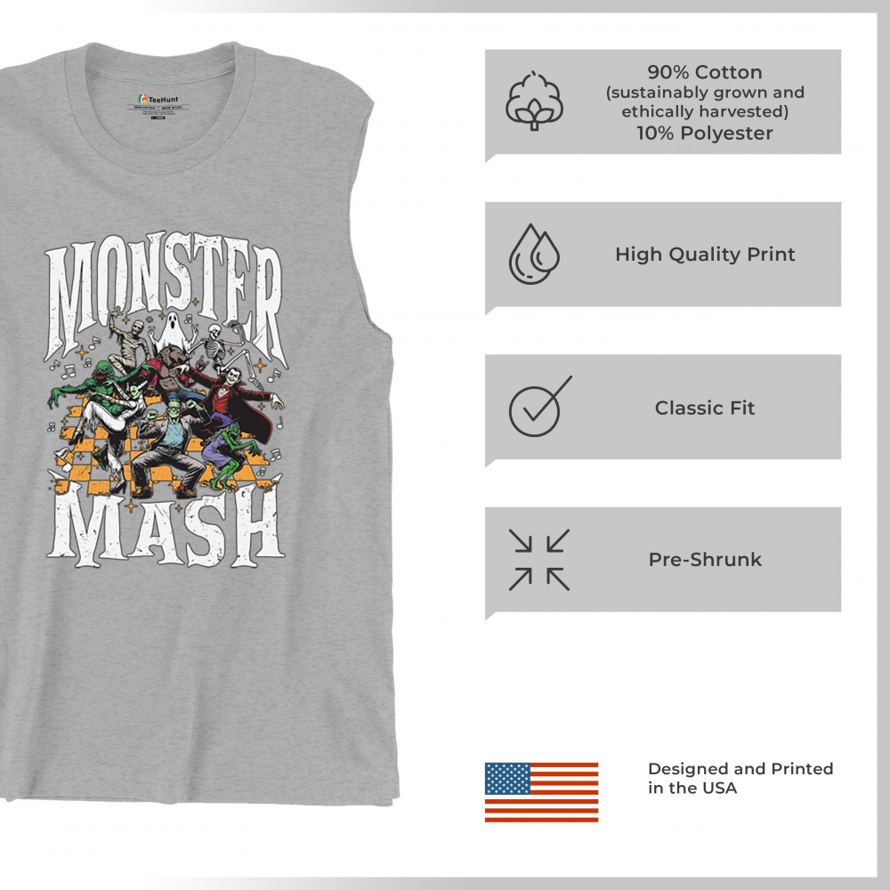 Monster Mash design with creepy costume, pumpkin head, and scary jack o lantern vibes. Perfect for Halloween night, October 31, and parties.