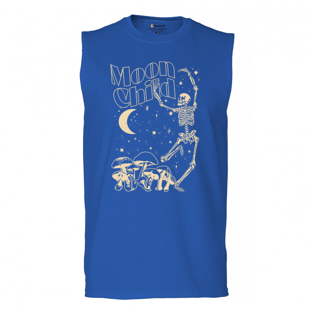 Mystical “Moon Child†design with skeleton, mushrooms, stars, and moon. Retro celestial vibes for dreamers, witches, and free spirits.