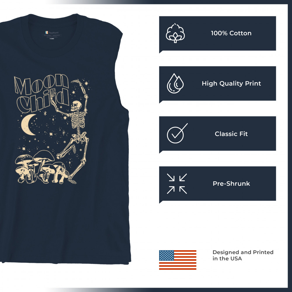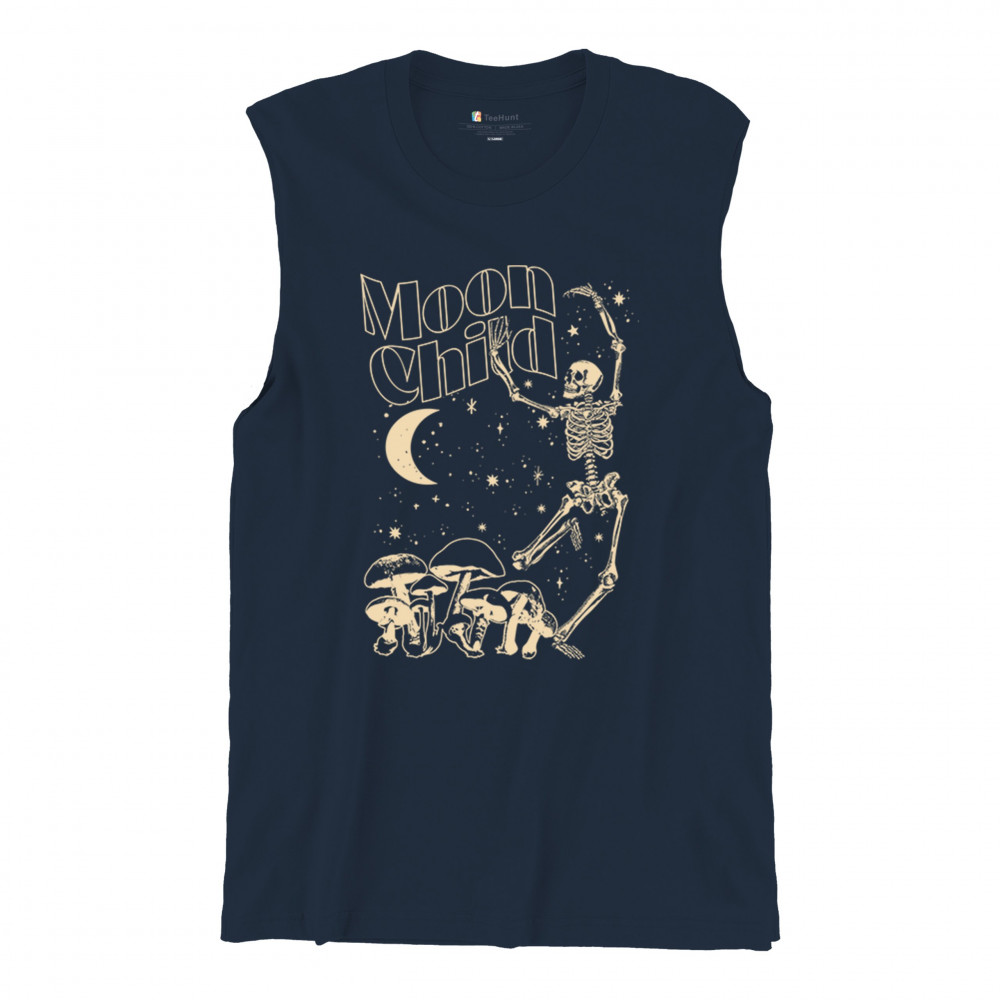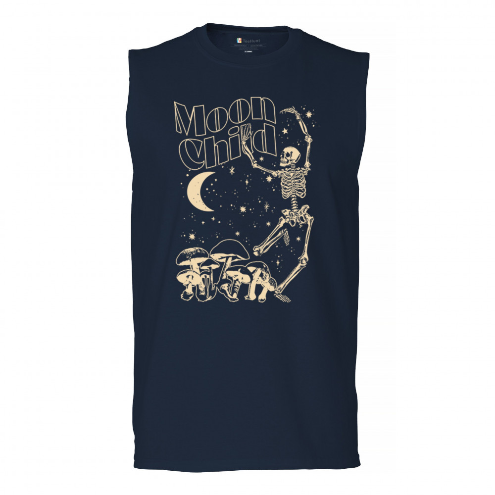 Mystical “Moon Child†design with skeleton, mushrooms, stars, and moon. Retro celestial vibes for dreamers, witches, and free spirits.