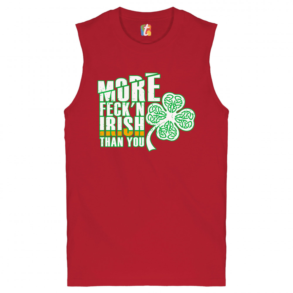 MORE FECK'N IRISH THAN YOU muscle shirt st. patrick's day shamrock men's red