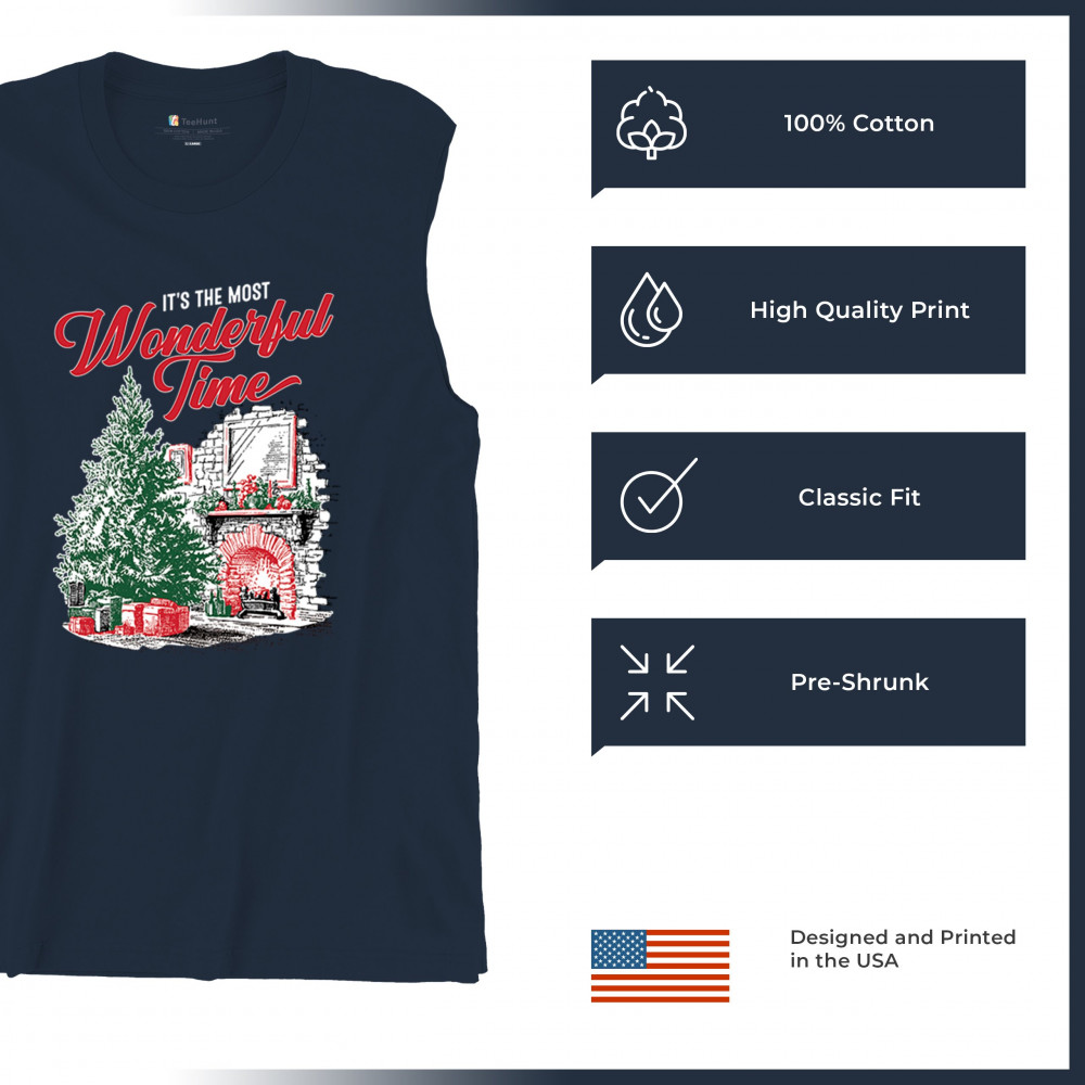 Make your holidays brighter with this “Most Wonderful Time†Christmas design, featuring a glowing fireplace, festive living room, and decorated Christmas tree. This cozy Christmas shirt combines holiday home decor style with classic Merry Xmas charm. Perfect for those who love Santa Claus, Rudolph, reindeer, Let It Snow vibes, and cheerful holiday fashion.