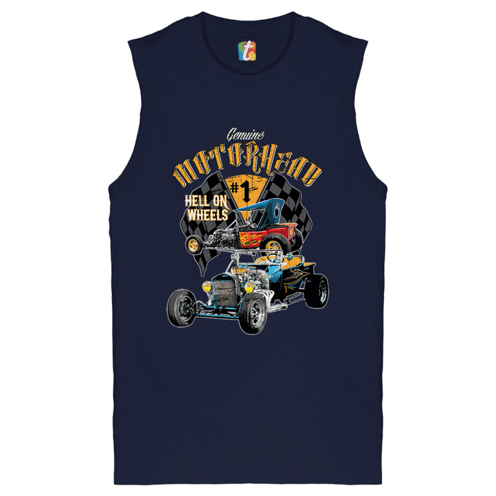 MOTORHEAD HOT ROD muscle shirt hell on wheels route 66 drag racing men's navy blue