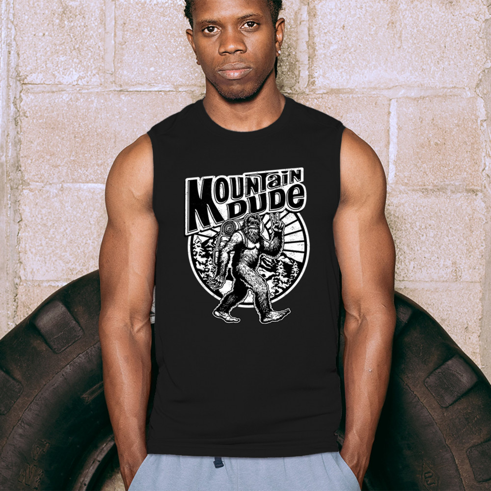 Celebrate outdoor adventures with the "Mountain Dude" design, featuring Sasquatch and mountain scenery. Perfect for hikers, campers, and Bigfoot fans.