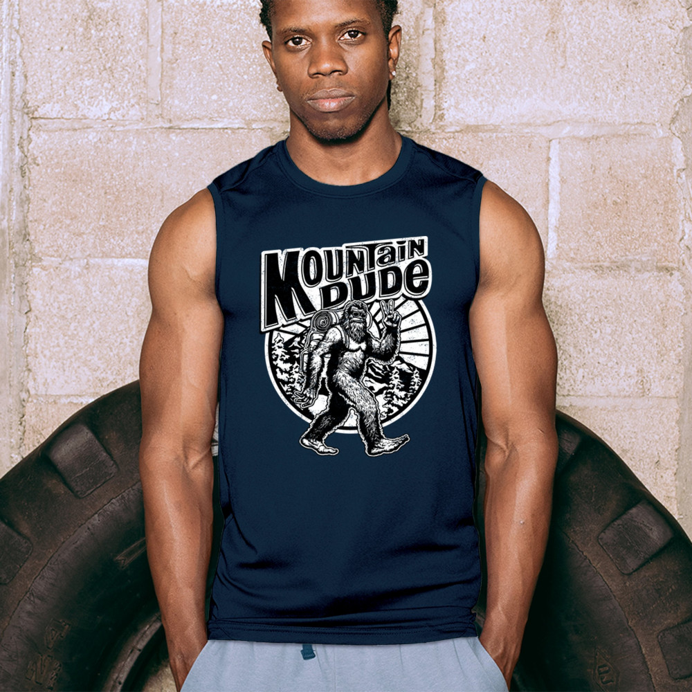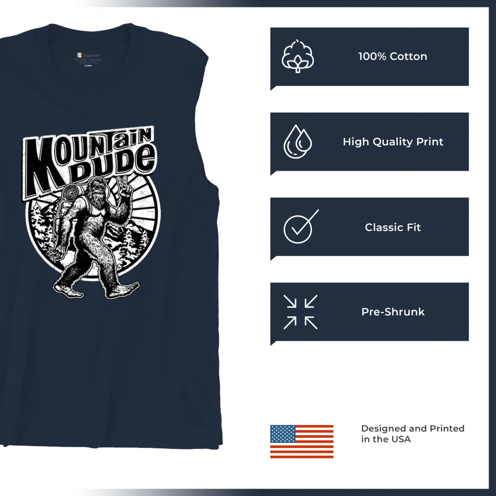 Celebrate outdoor adventures with the "Mountain Dude" design, featuring Sasquatch and mountain scenery. Perfect for hikers, campers, and Bigfoot fans.