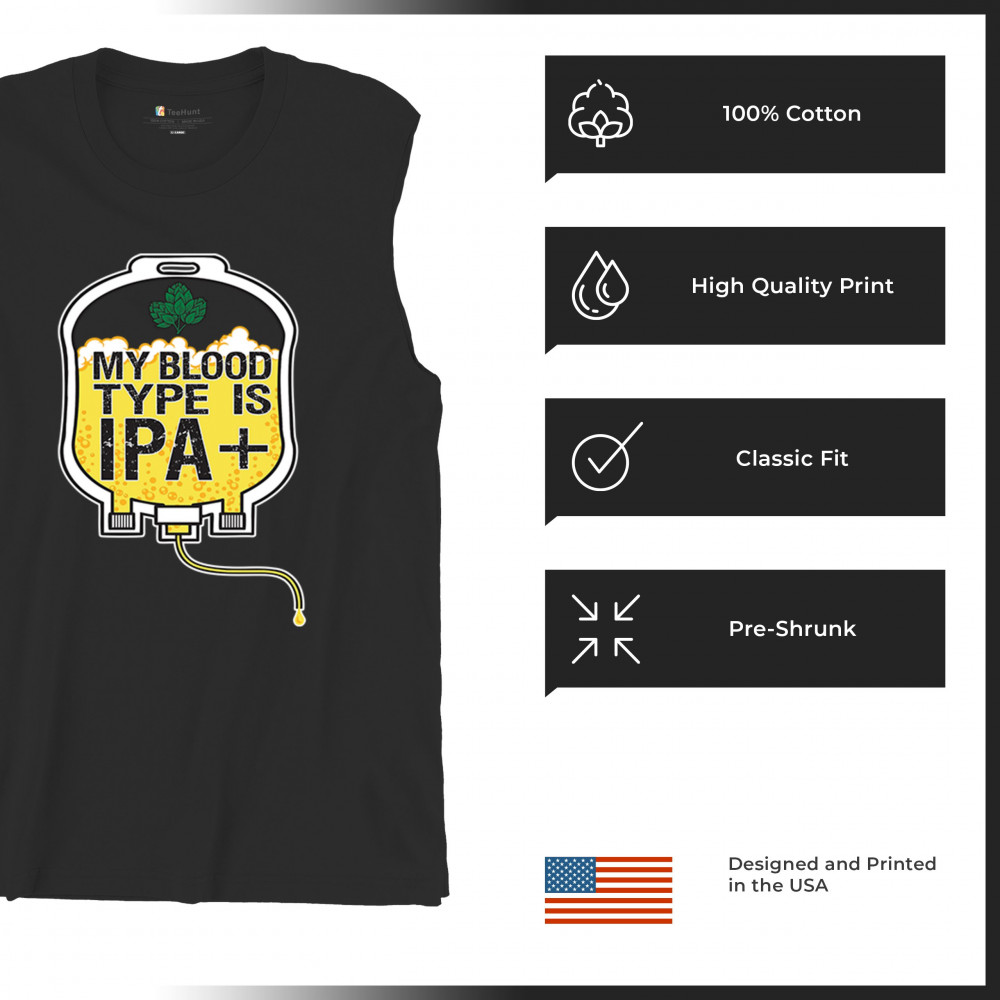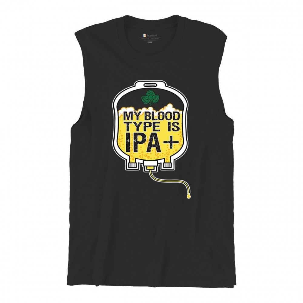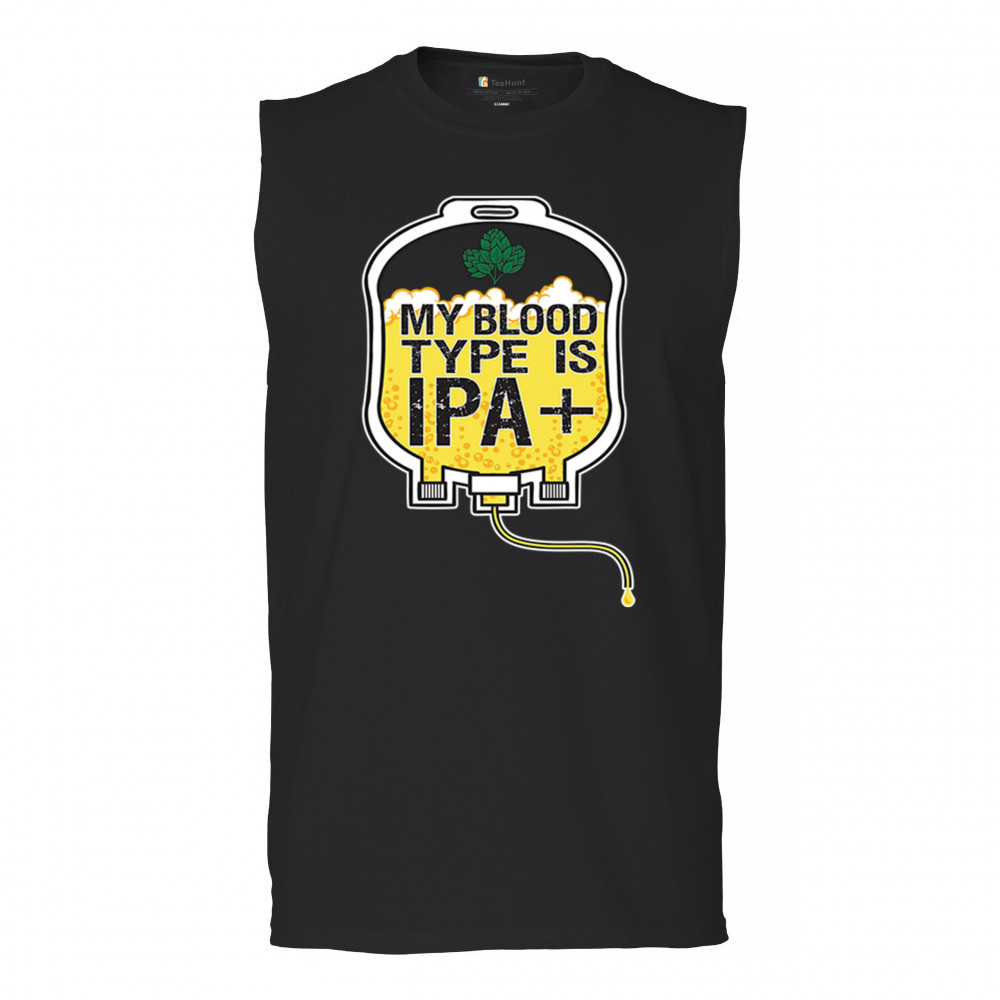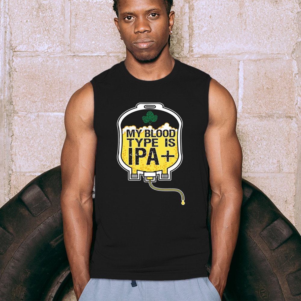 MY BLOOD TYPE IPA muscle shirt craft brew hop lover funny beer bag humor men's black