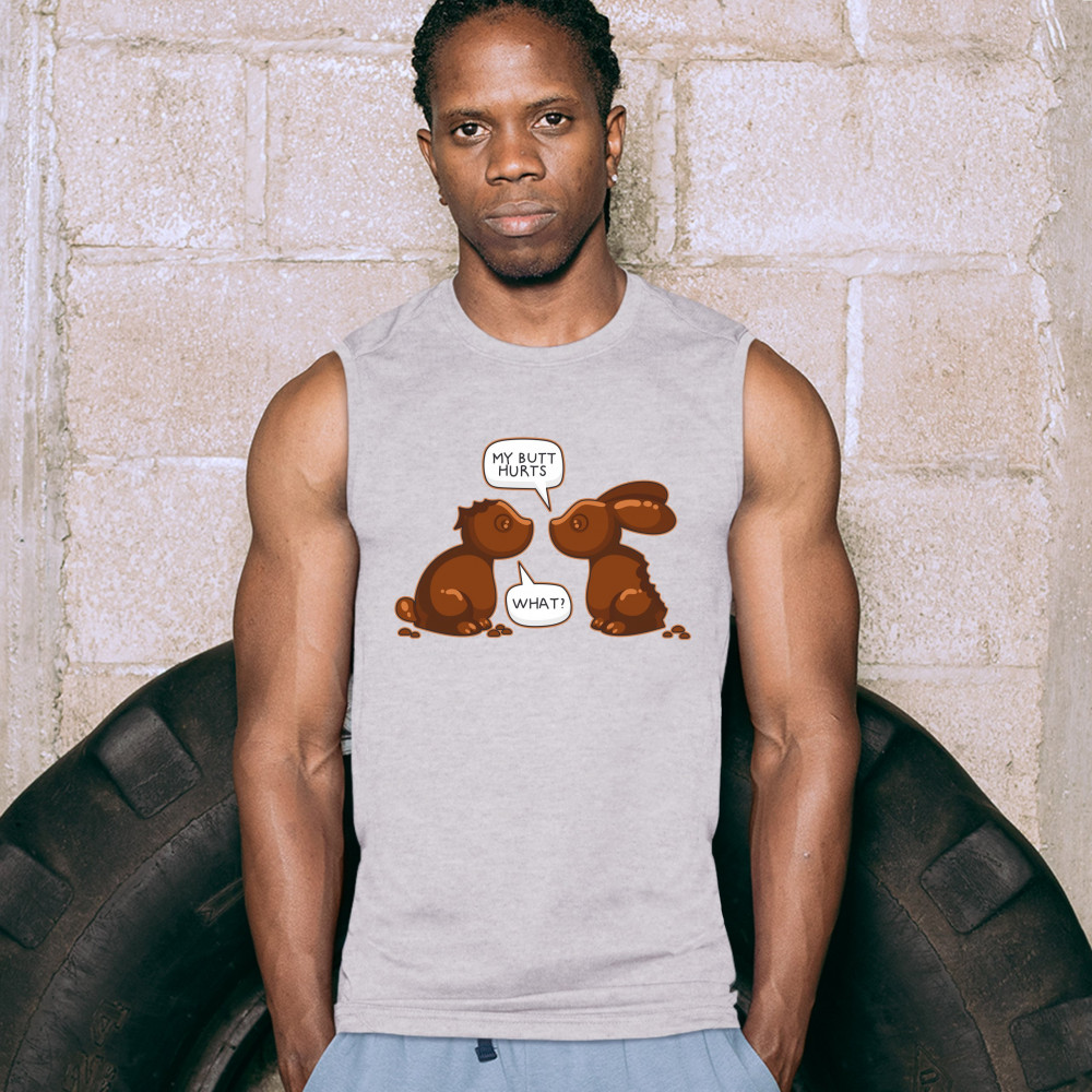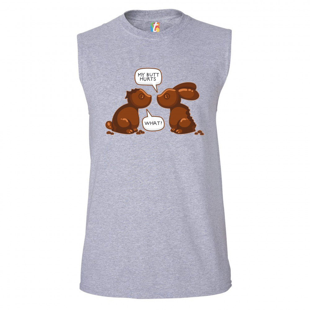 MY BUTT HURTS - WHAT? muscle shirt chocolate bunnies easter rabbits men's gray