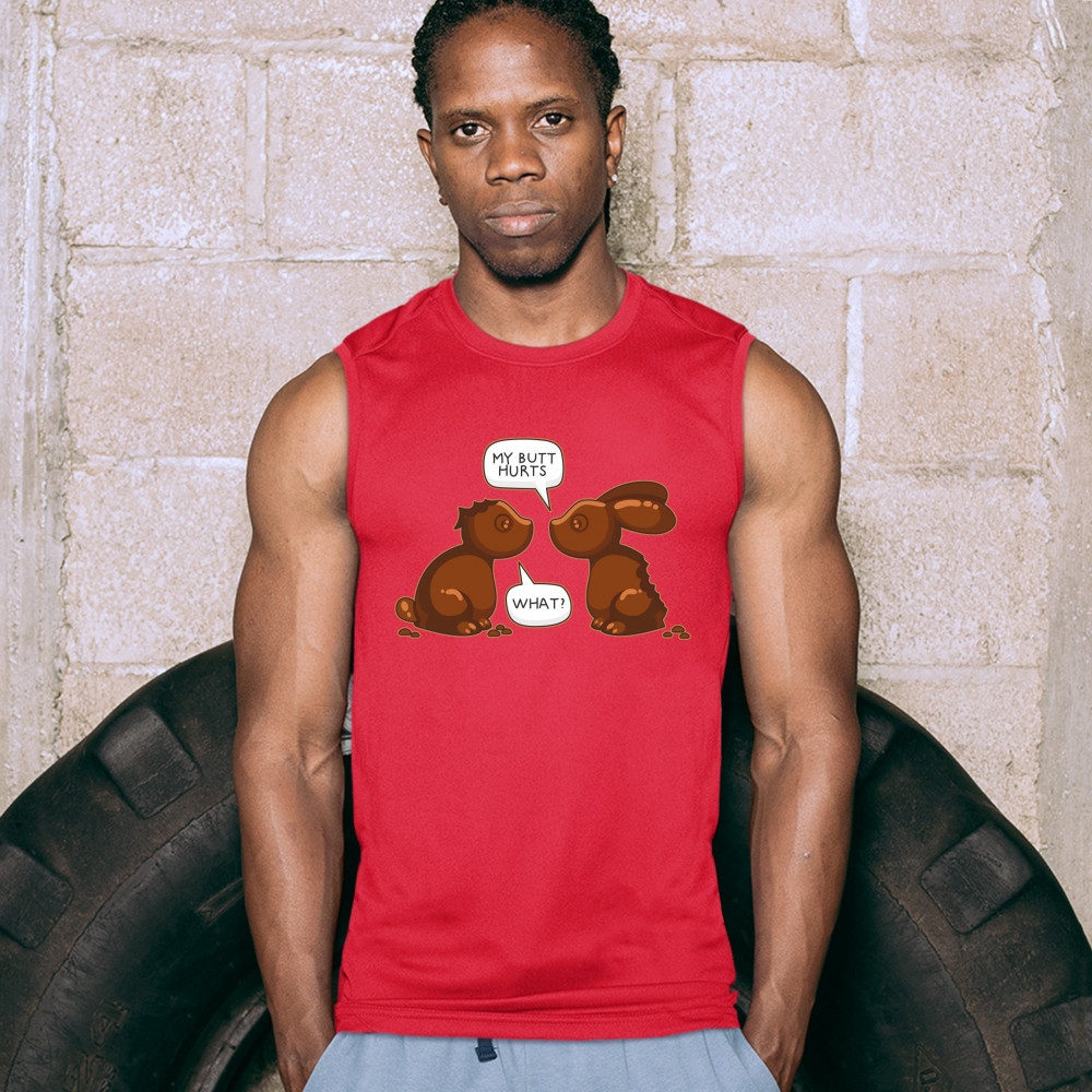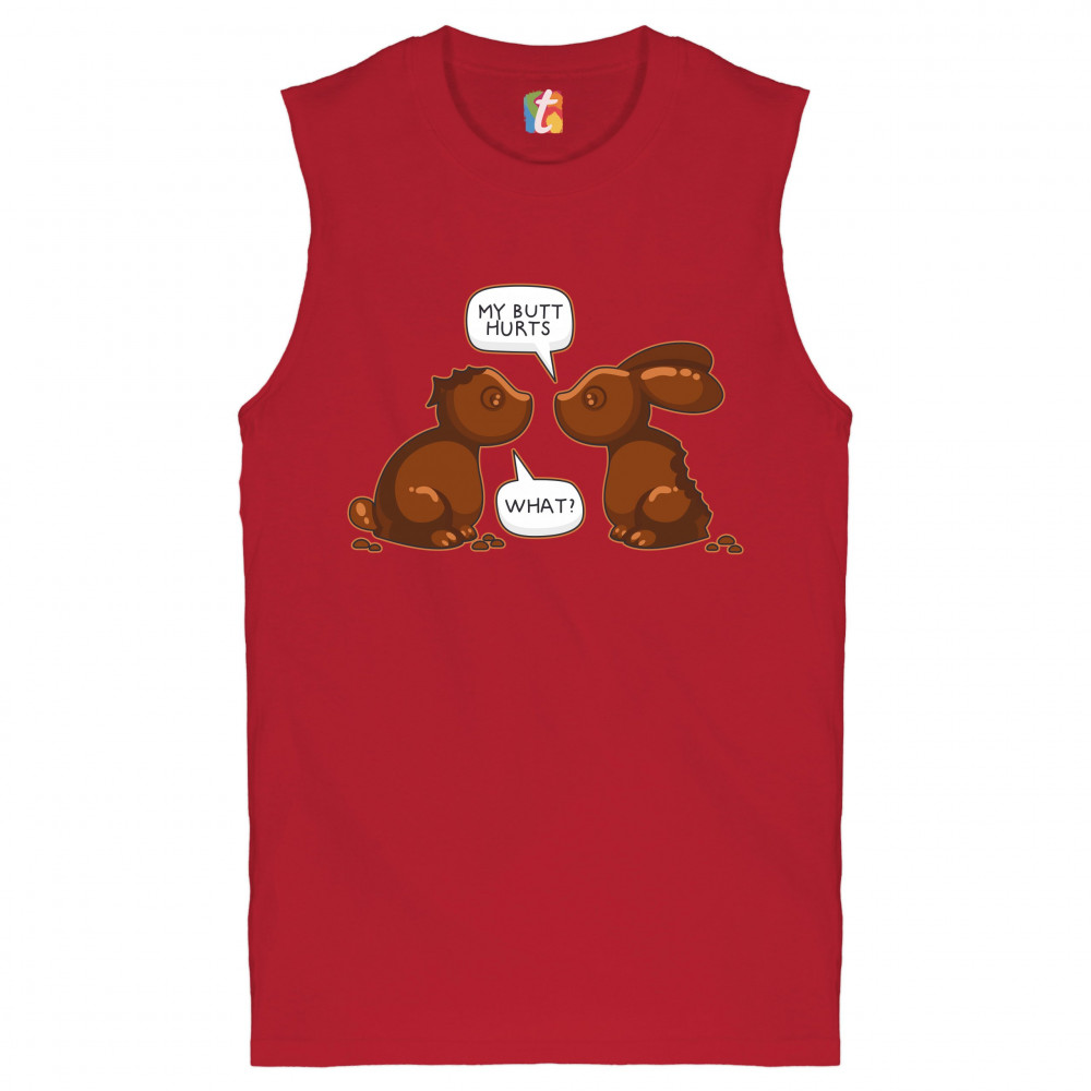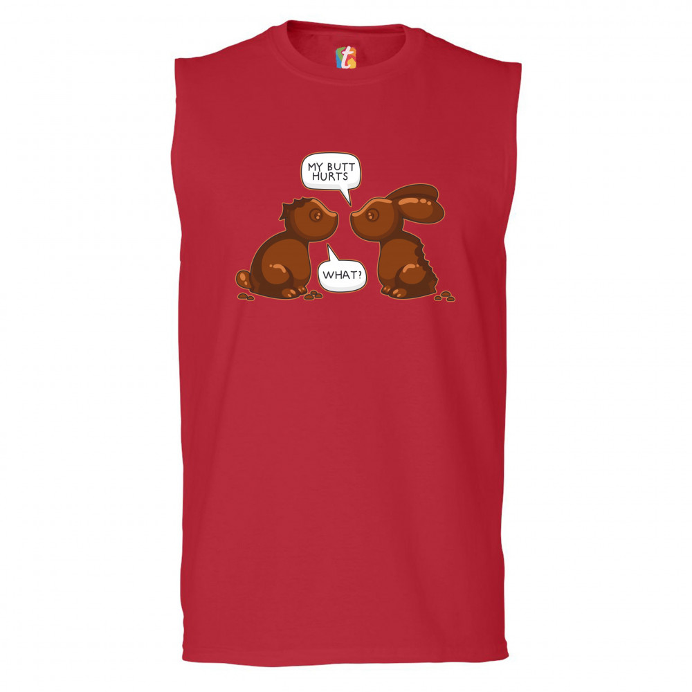 MY BUTT HURTS - WHAT? muscle shirt chocolate bunnies easter rabbits men's red