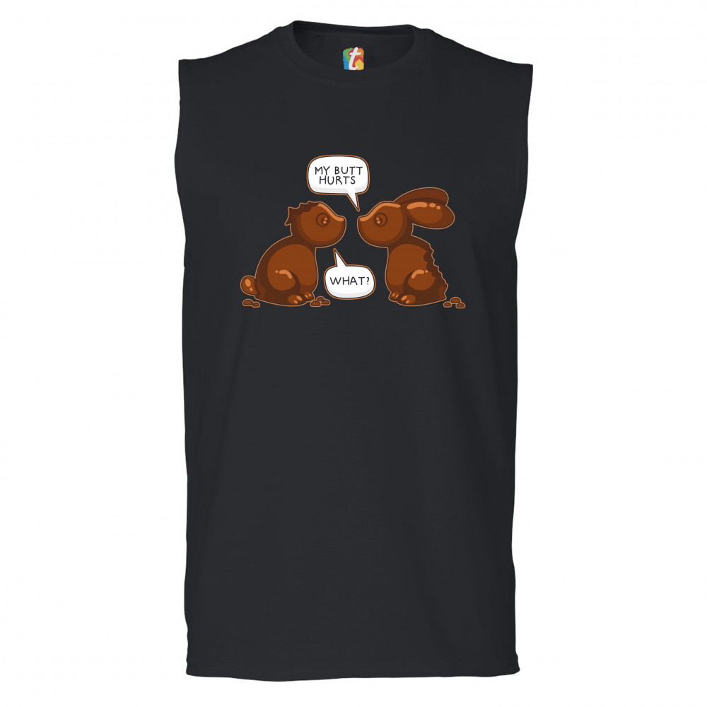 MY BUTT HURTS - WHAT? muscle shirt chocolate bunnies easter rabbits men's black